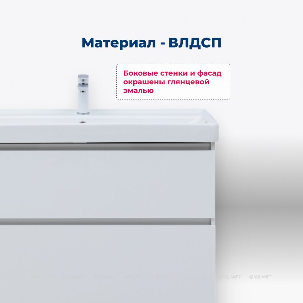 Aquanet 345375 Тумба с раковиной Вега 60 (Ирис) напольная 2 ящ. цв. белый глянец (345375)