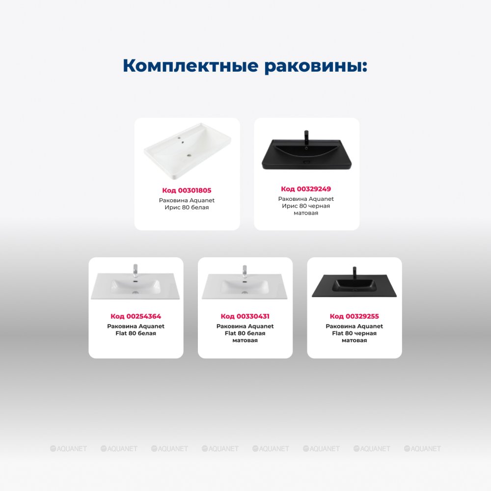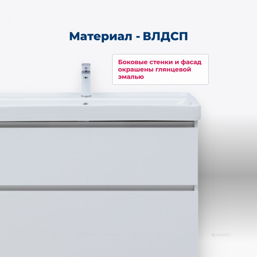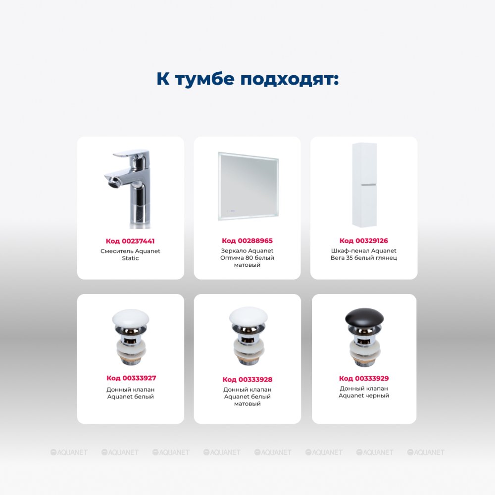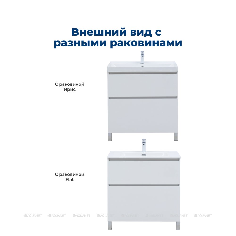 Aquanet 345377 Тумба с раковиной Вега 80 (Ирис) напольная 2 ящ. цв. белый глянец (345377)
