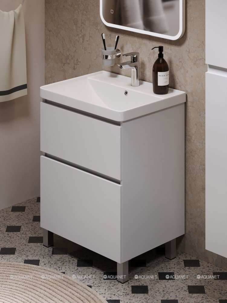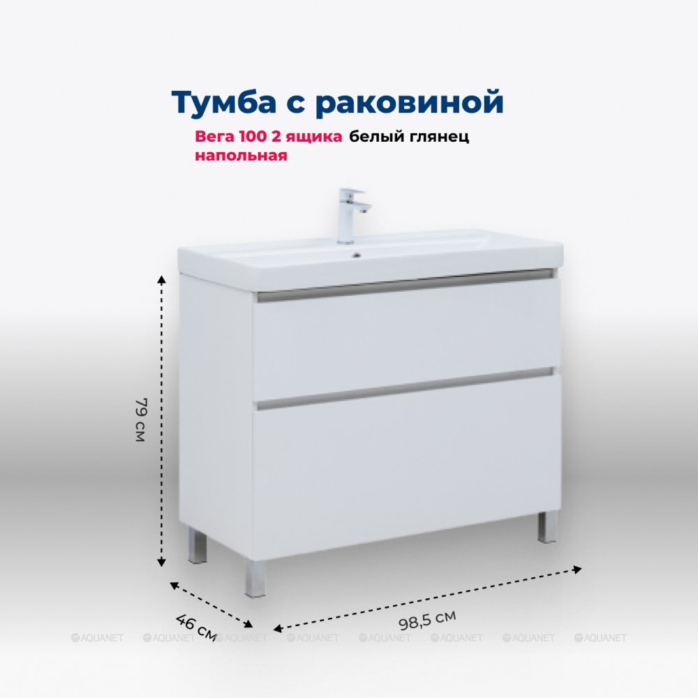 Aquanet 345379 Тумба с раковиной Вега 100 (Flat) напольная 2 ящ. цв. белый глянец (345379)