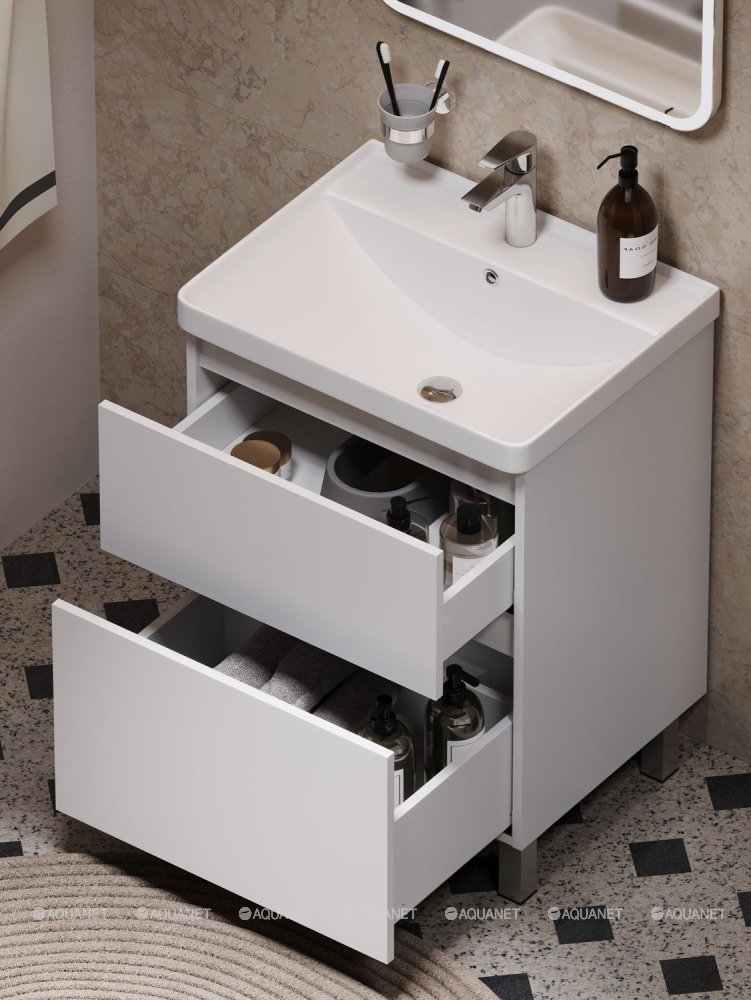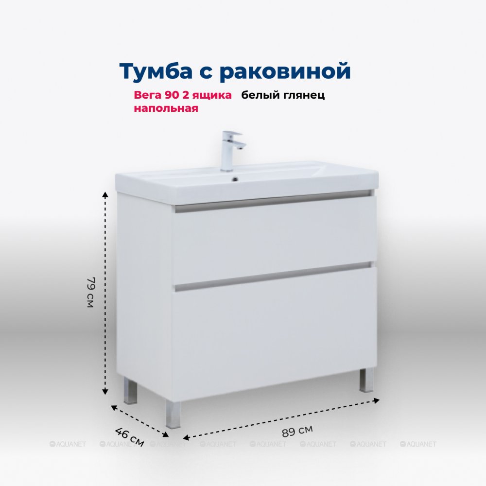 Aquanet 345383 Тумба с раковиной Вега 90 (Flat) напольная 2 ящ. цв. белый глянец (345383)