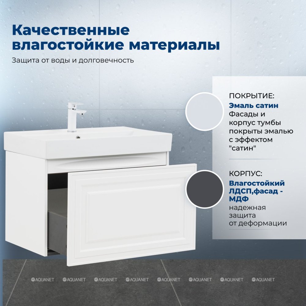 Aquanet 345481 Тумба Агата 75 1 ящ. цв. белый сатин (345481)