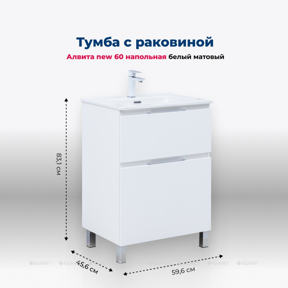 Aquanet 345685 Тумба с раковиной Алвита new 60 (Flash) напольная 2 ящ. цв. белый матовый (345685)