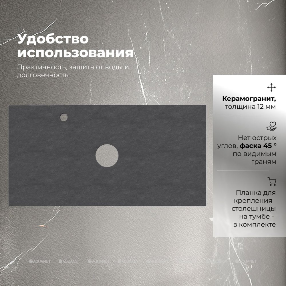 Aquanet 345785 Столешница Flat 90 отв. слева цв. графит (345785)