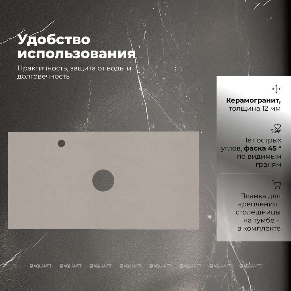 Aquanet 345786 Столешница Flat 100 отв. слева цв. бежевый (345786)