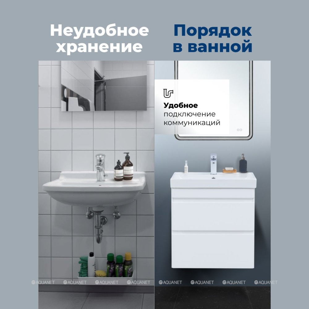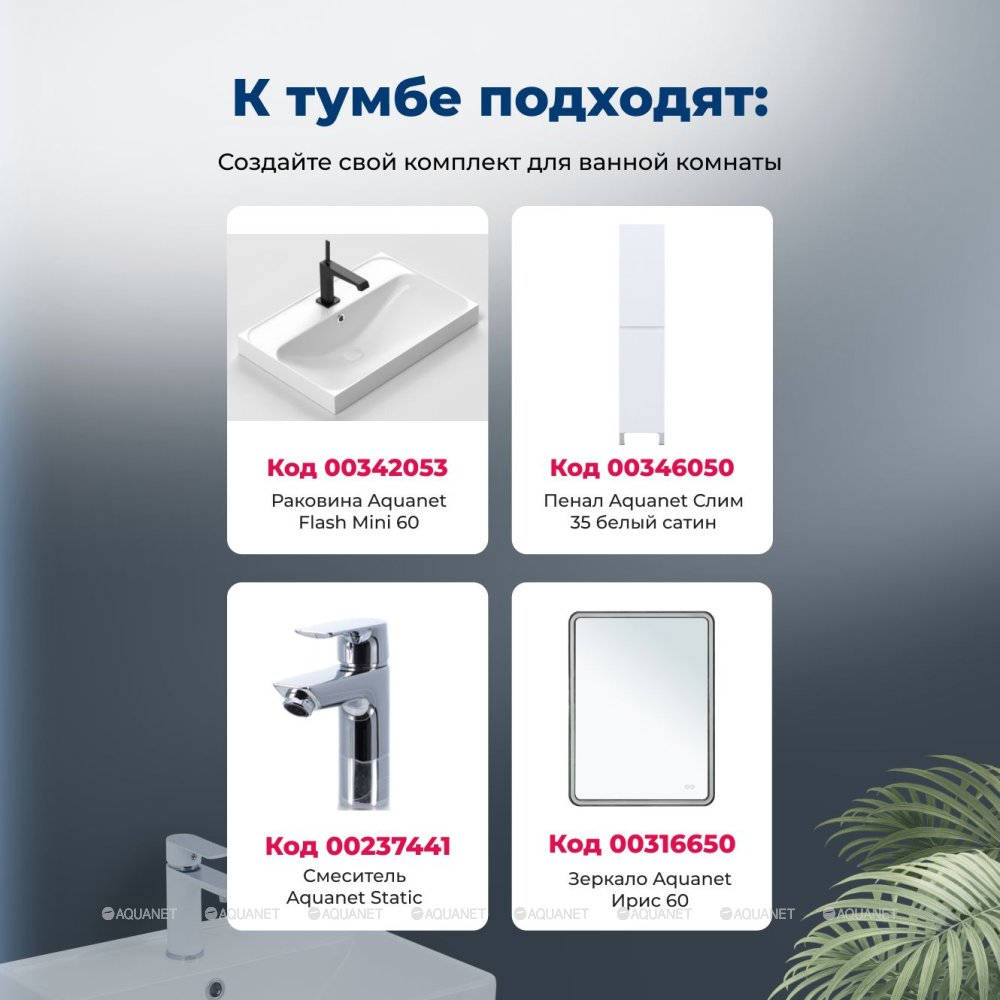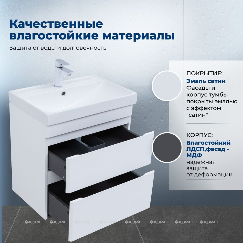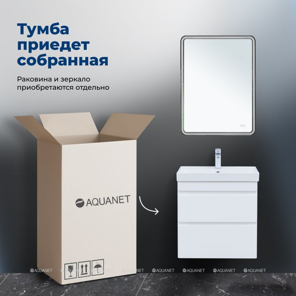 Aquanet 346047 Тумба Слим 60 2 ящ. цв.белый сатин (346047)