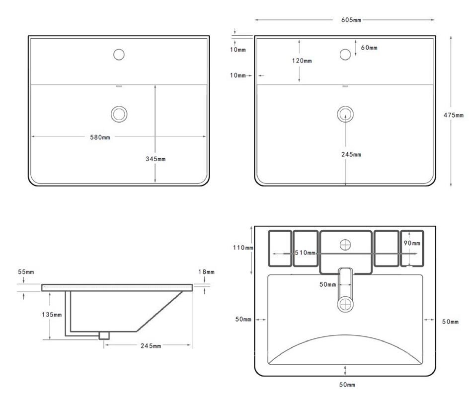 Aquanet 346264 Раковина керамическая накладная Ирис-Т 605*475*190 мм (346264)