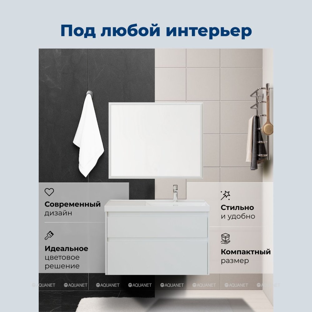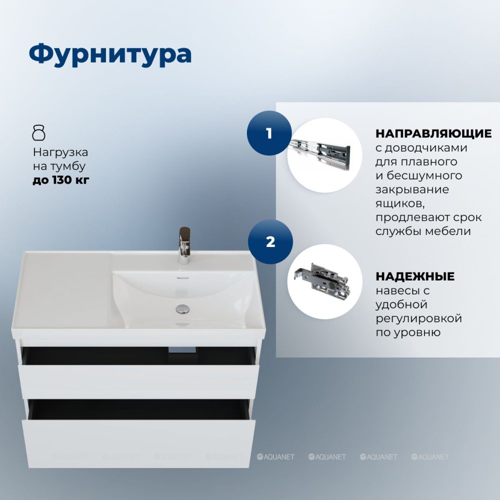 Aquanet 346310 Тумба Nova Lite 2.0 90 R 2 ящ. цв. белый глянец (346310)