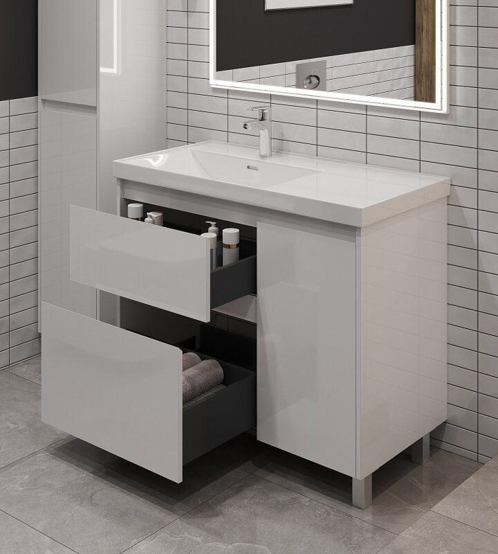 Aquanet 346339 Тумба Nova Lite 2.0 90 L напольная цв. белый глянец (346339)