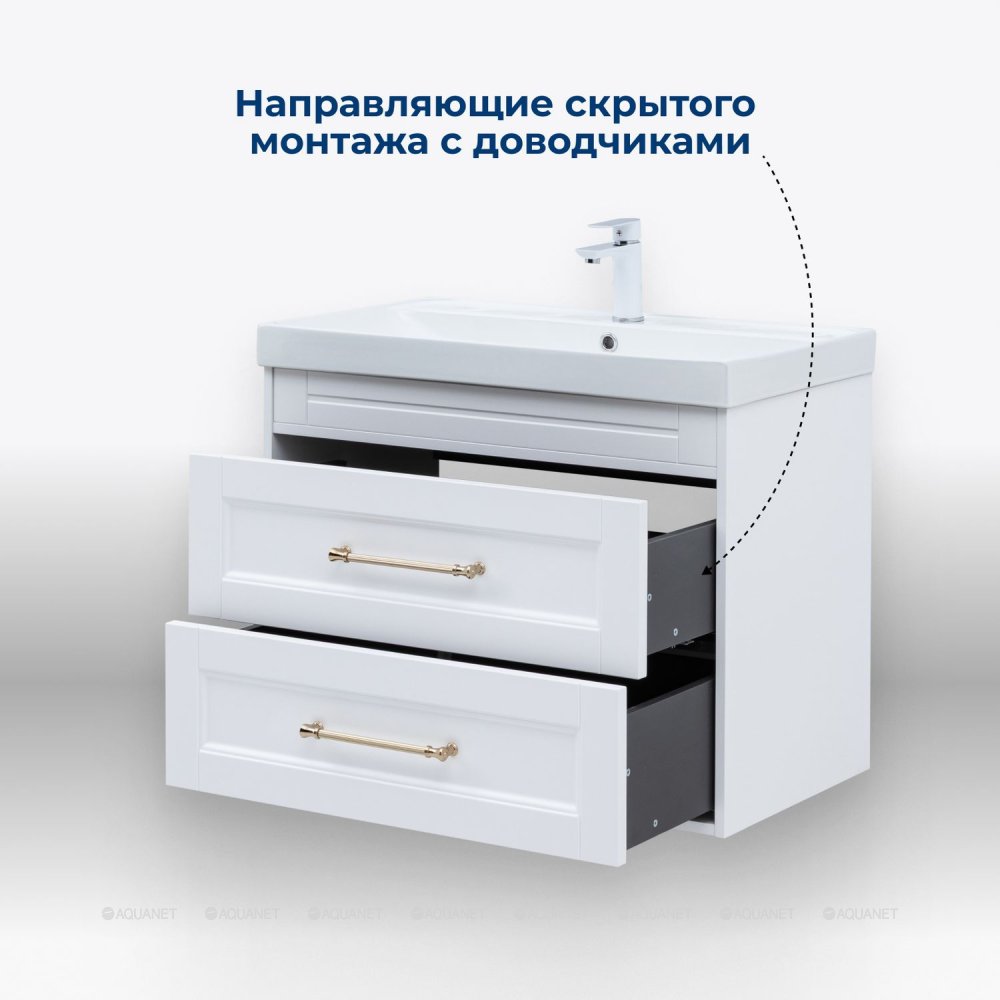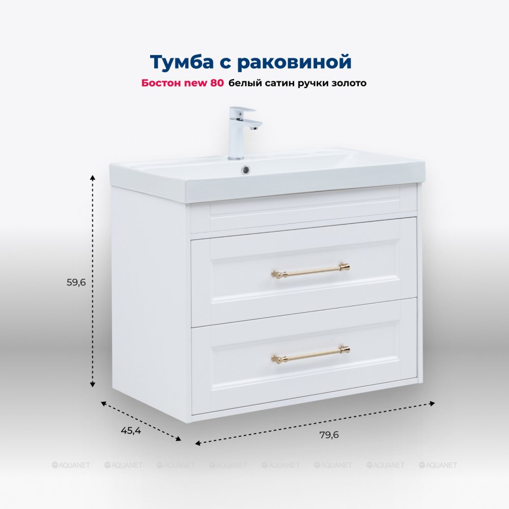 Aquanet 347847 Тумба с раковиной Бостон new 80 (Flat) цв.белый сатин, ручки золото (347847)