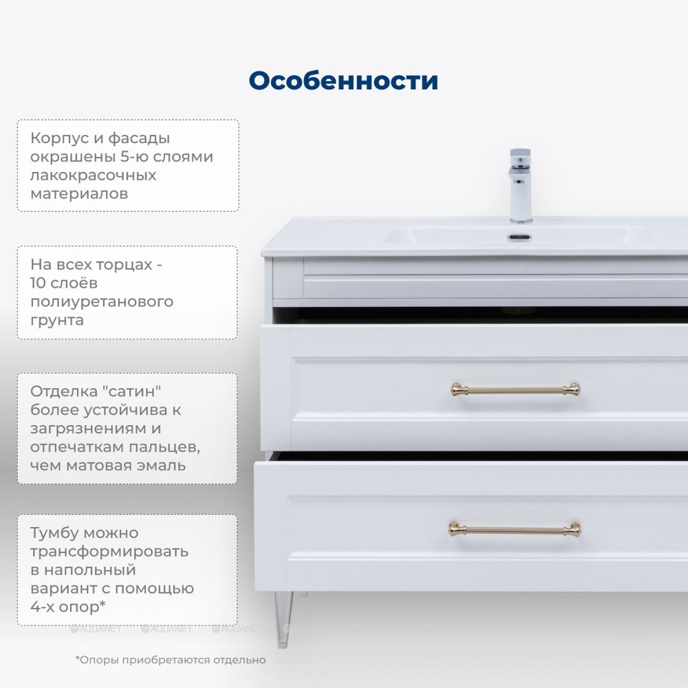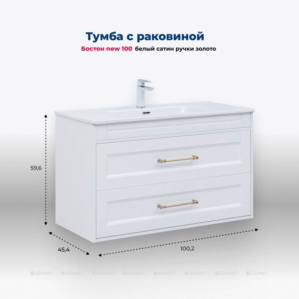 Aquanet 347848 Тумба с раковиной Бостон new 100 (Flash) цв.белый сатин, ручки золото (347848)