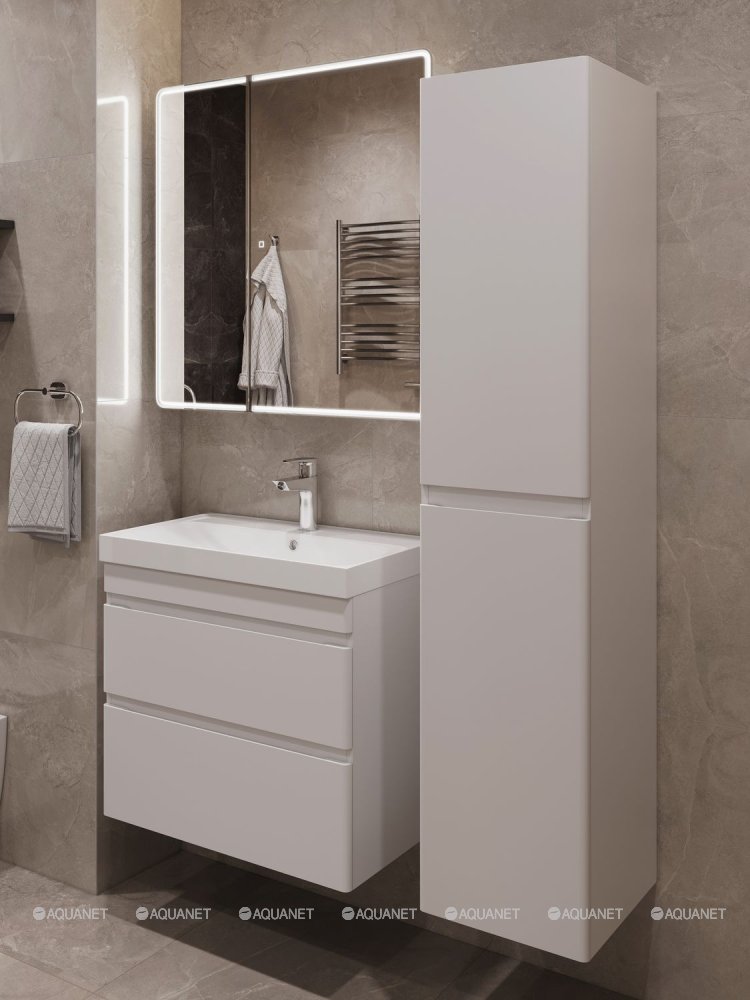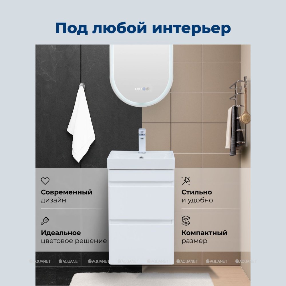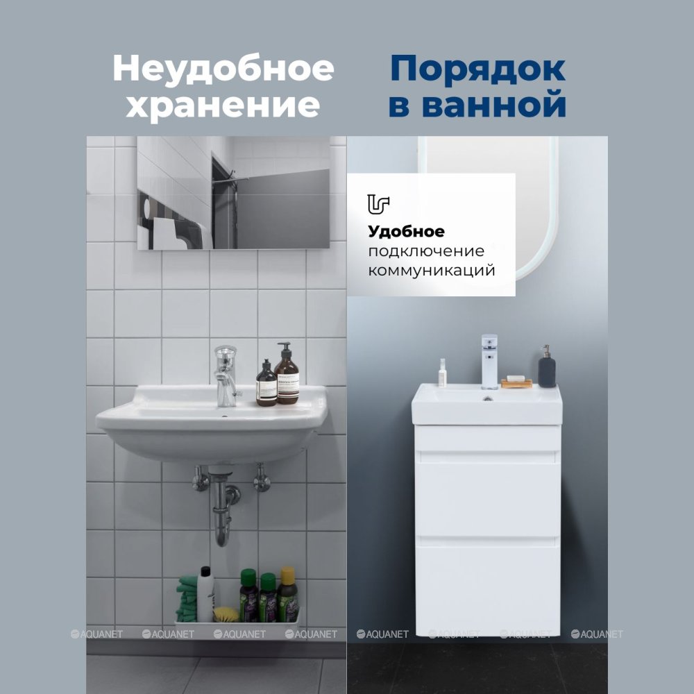 Aquanet 348173 Тумба с раковиной Слим 40 2 ящ. цв.белый сатин (348173)