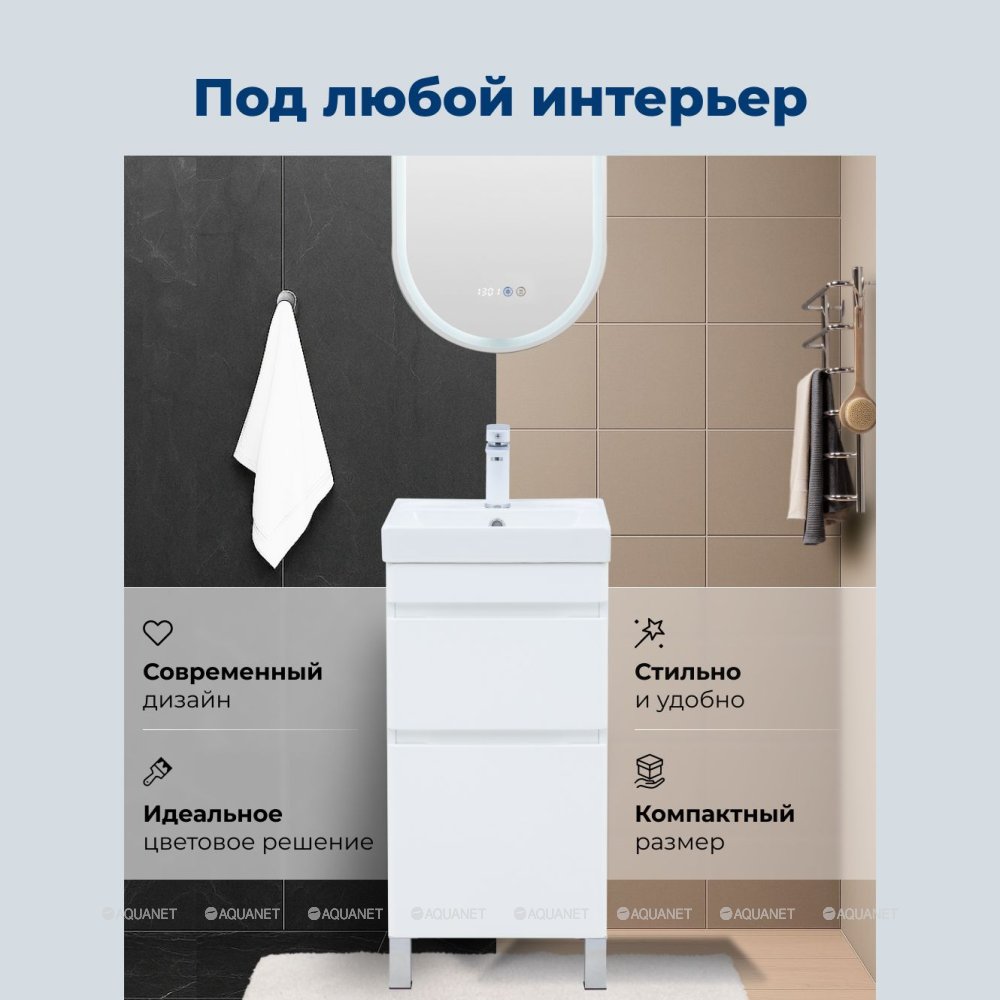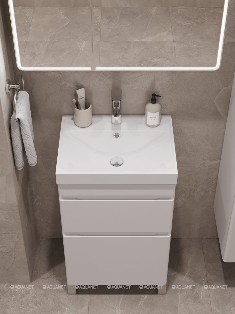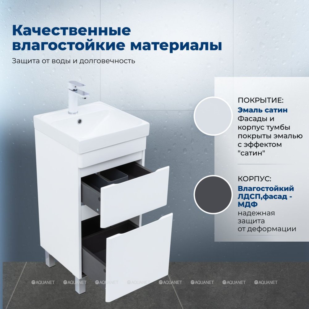 Aquanet 348174 Тумба с раковиной Слим 40 напольная 2 ящ. цв.белый сатин (348174)