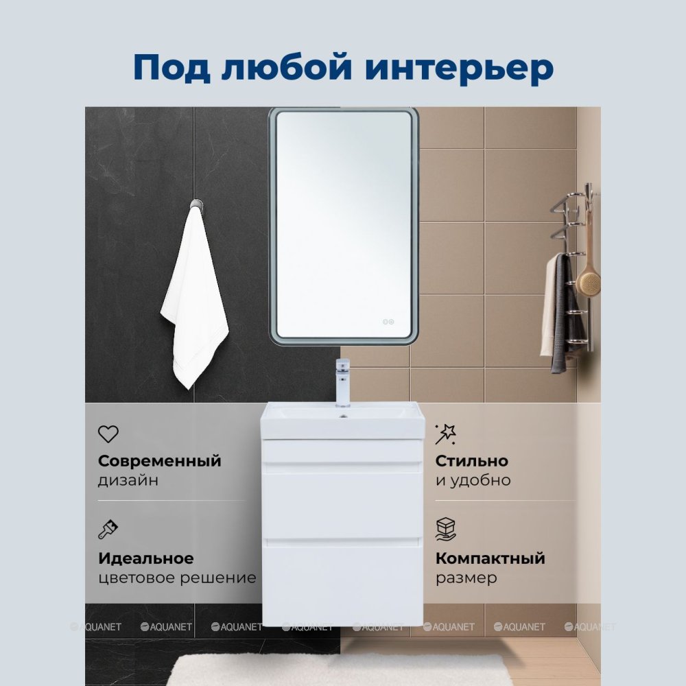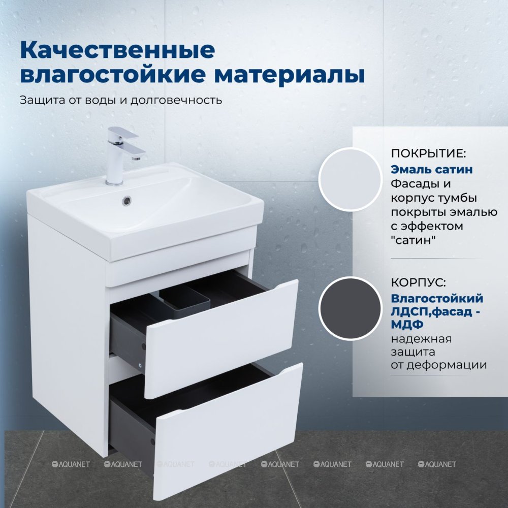 Aquanet 348175 Тумба с раковиной Слим 50 2 ящ. цв.белый сатин (348175)