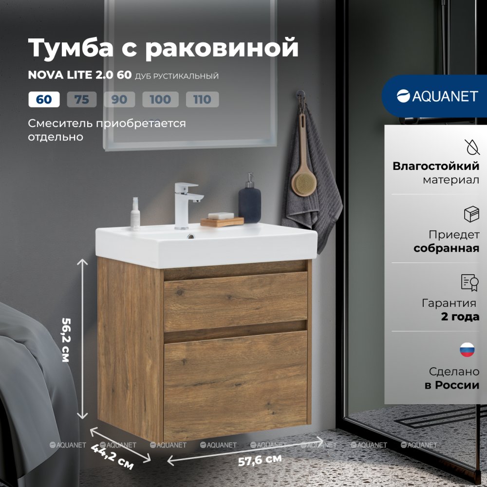 Aquanet 348189 Тумба с раковиной Nova Lite 2.0 60 2 ящ. цв. дуб рустикальный (348189)