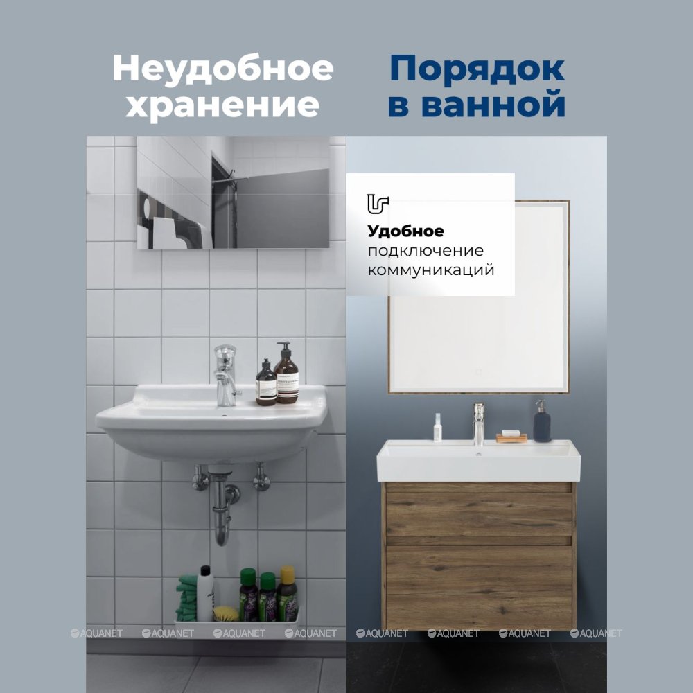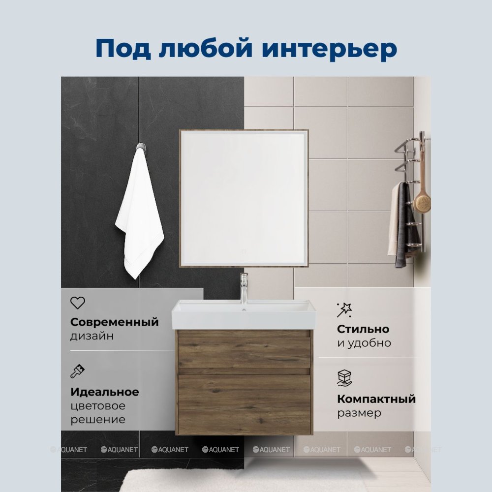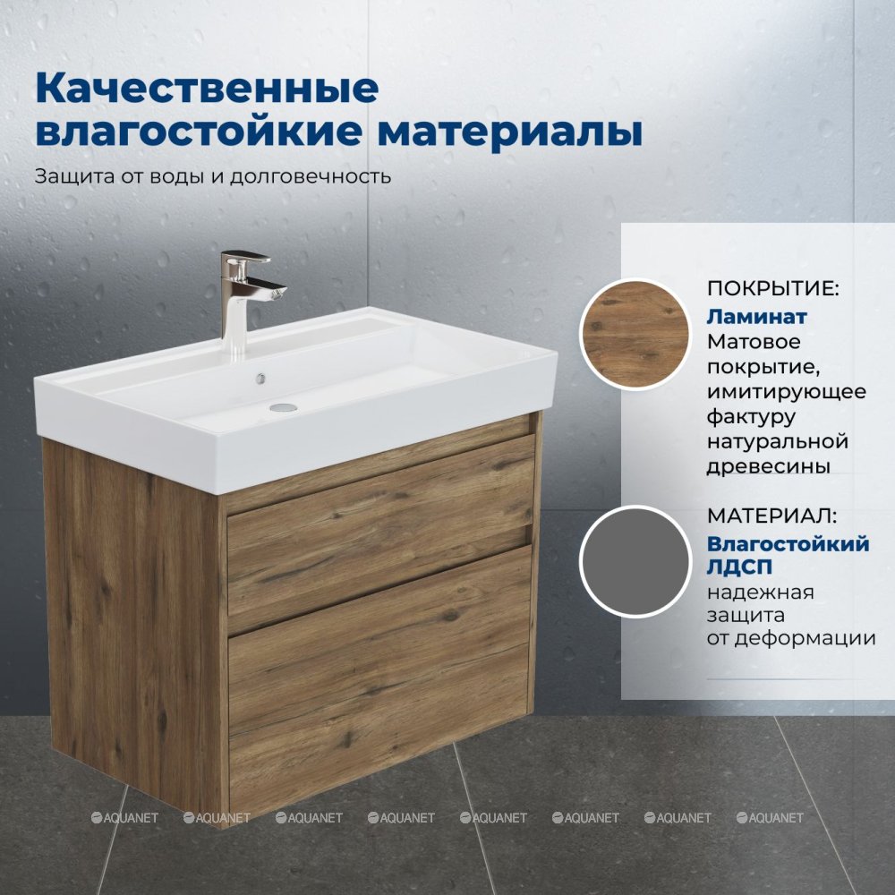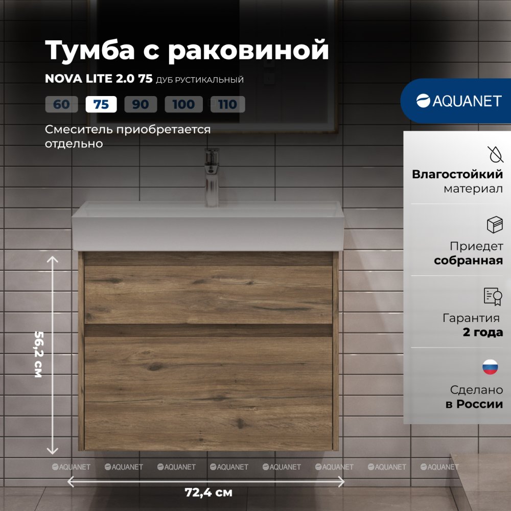 Aquanet 348194 Тумба с раковиной Nova Lite 2.0 75 2 ящ. цв. дуб рустикальный (348194)