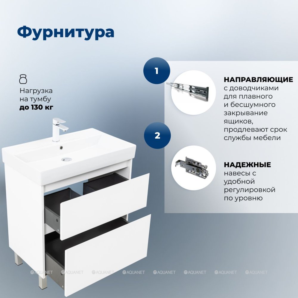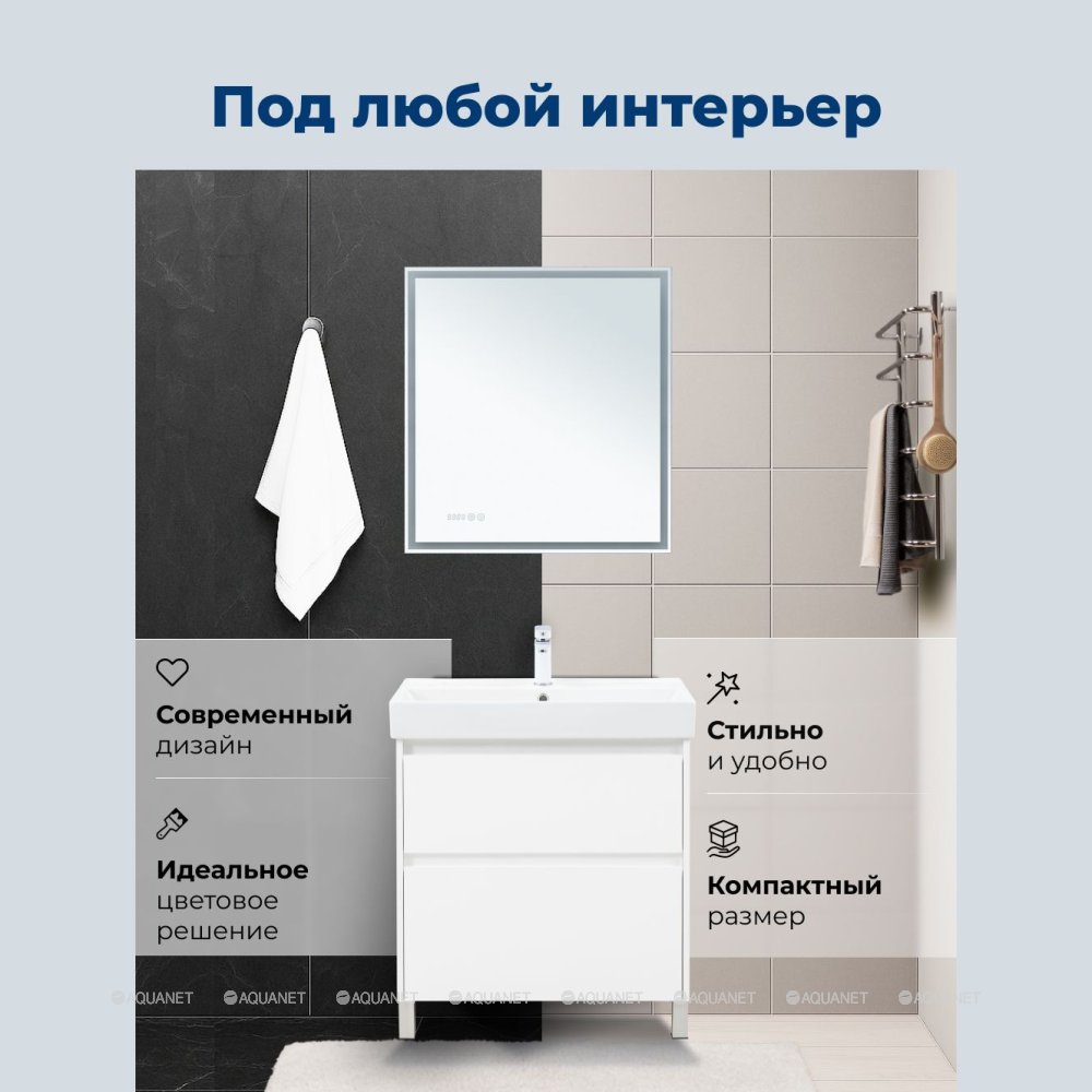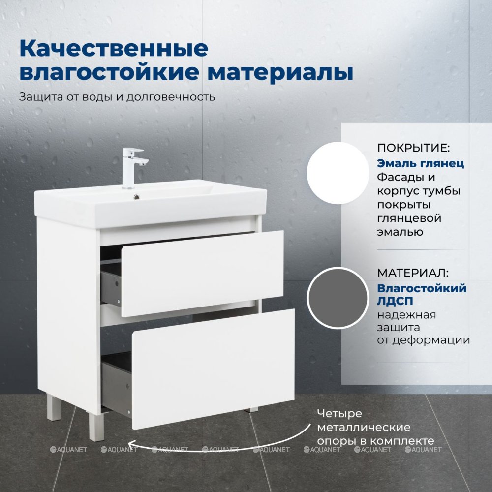 Aquanet 348195 Тумба с раковиной Nova Lite 2.0 75 напольная цв. белый глянец (348195)