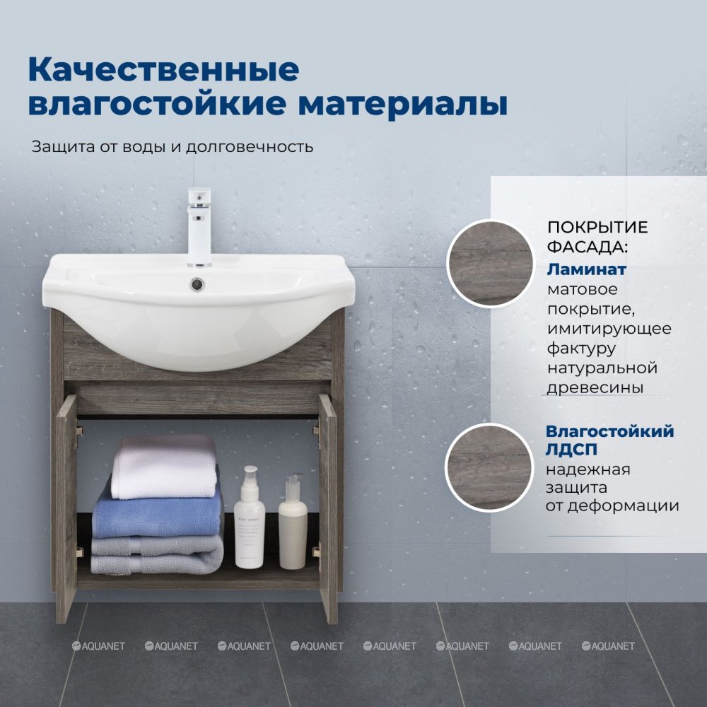 Aquanet 354987 Тумба с раковиной Сидней 60 цв.дуб рошелье (раковина Shenxin) (354987)