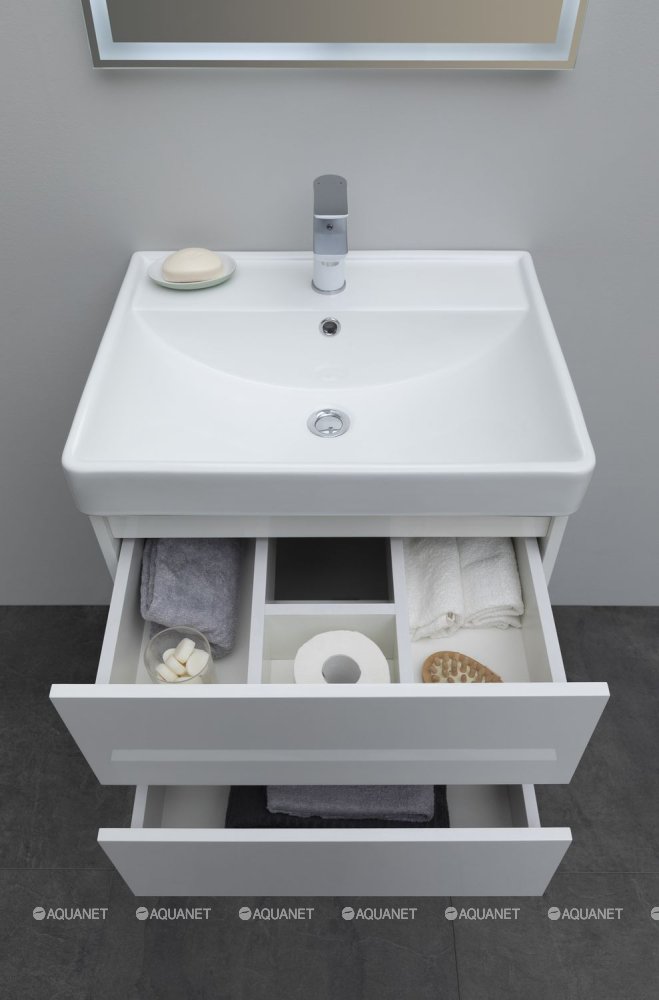 Aquanet 362546 Тумба Вега 60 (Ирис T) 2 ящ. цв. белый глянец (362546)