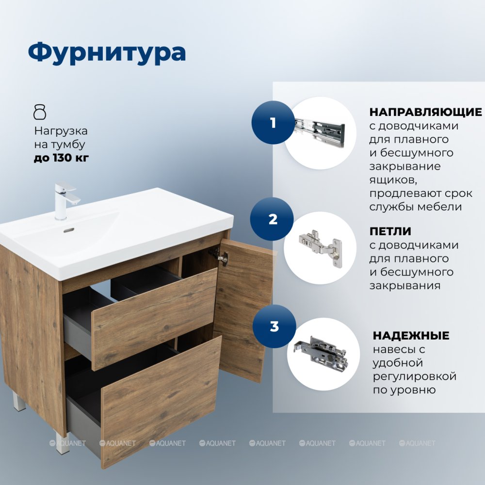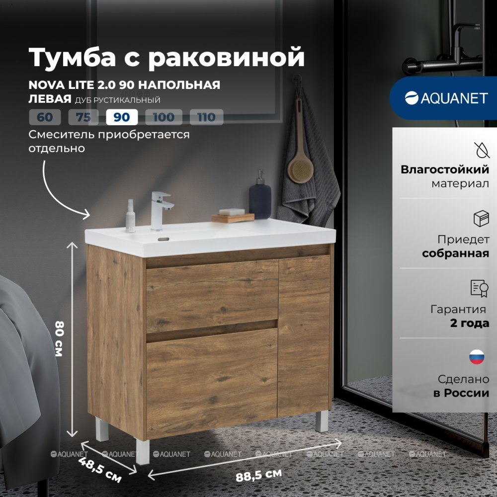 Aquanet 365925 Тумба с раковиной Nova Lite 2.0 90 L напольная цв. дуб рустикальный (365925)