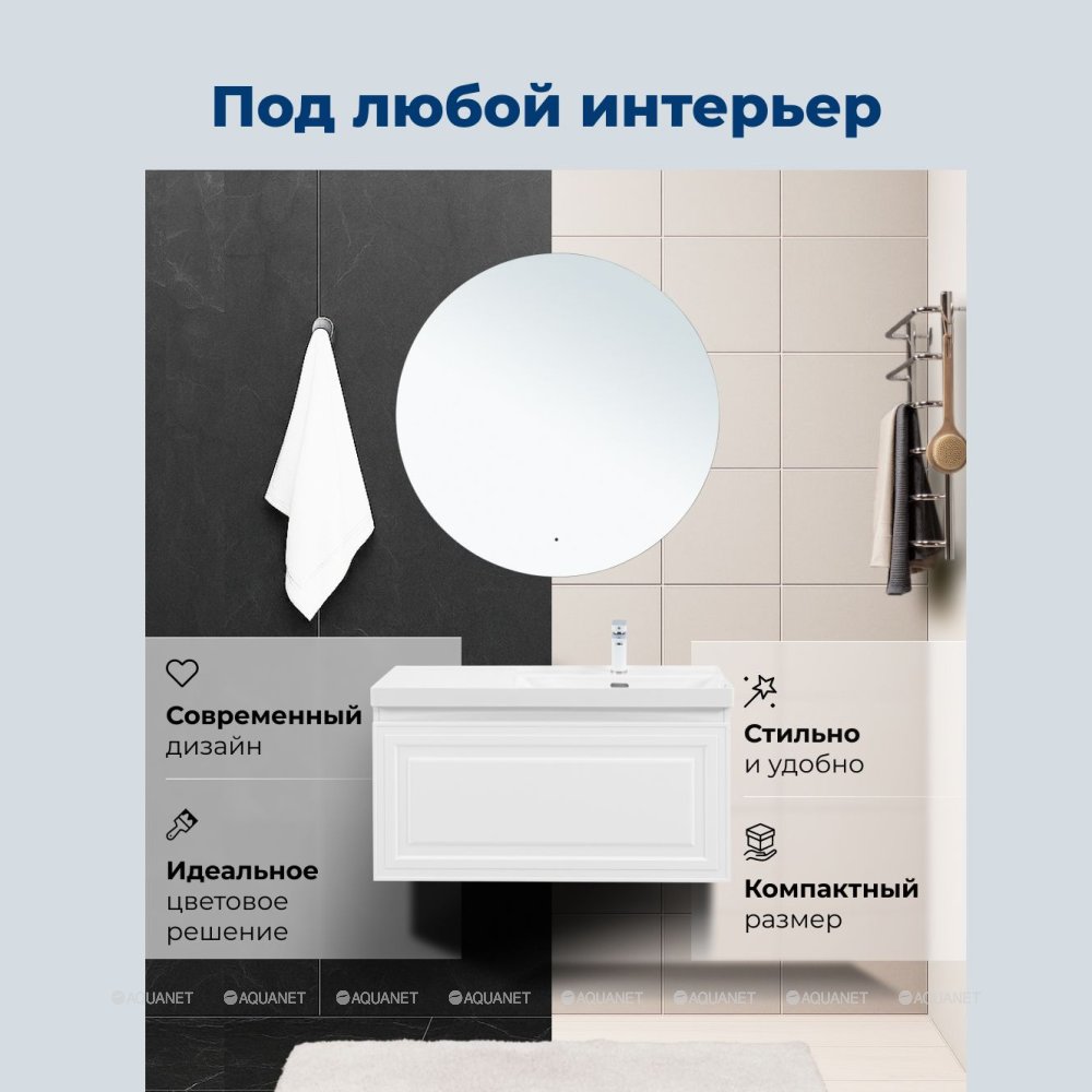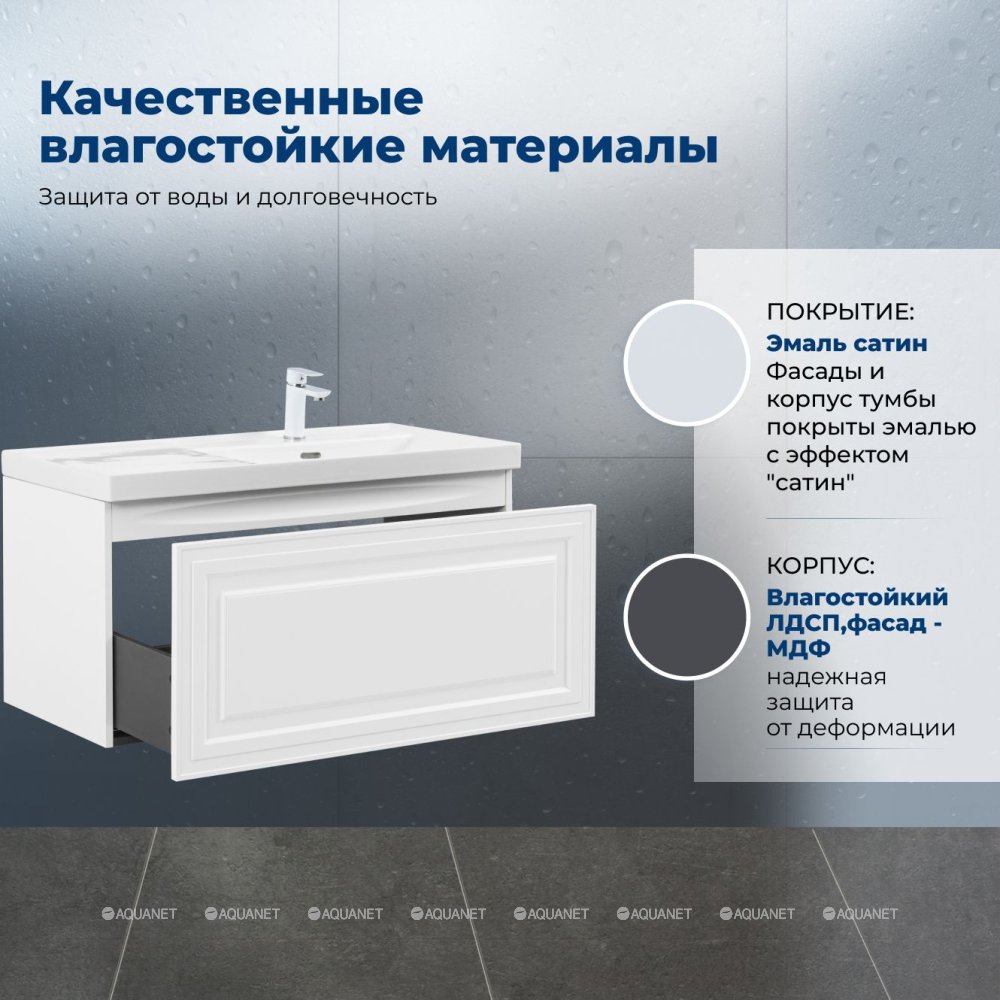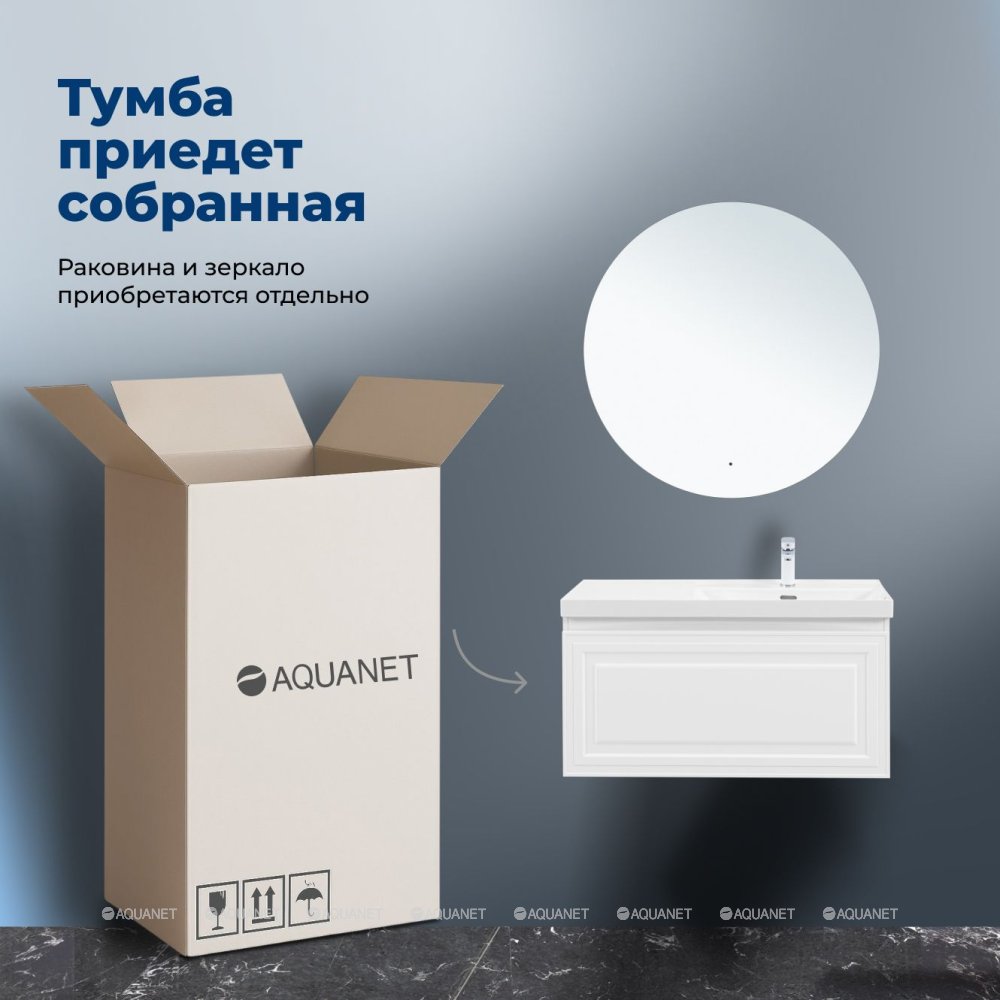 Aquanet 365932 Тумба с раковиной Агата 100 R 1 ящ. цв. белый сатин (365932)