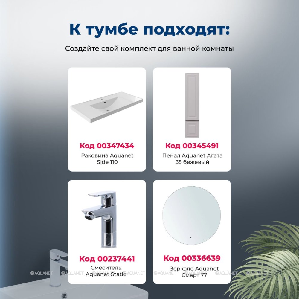Aquanet 365939 Тумба с раковиной Агата 110 1 ящ. цв. бежевый (365939)