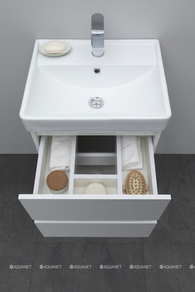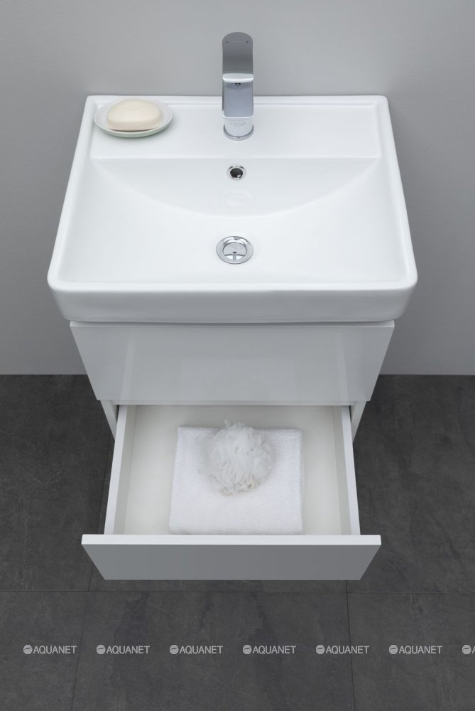 Aquanet 367322 Тумба с раковиной Вега 50 (Ирис T) 2 ящ. цв. белый глянец (367322)