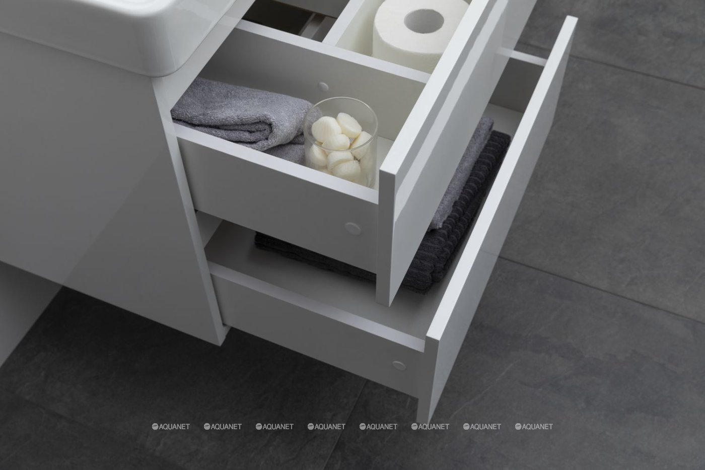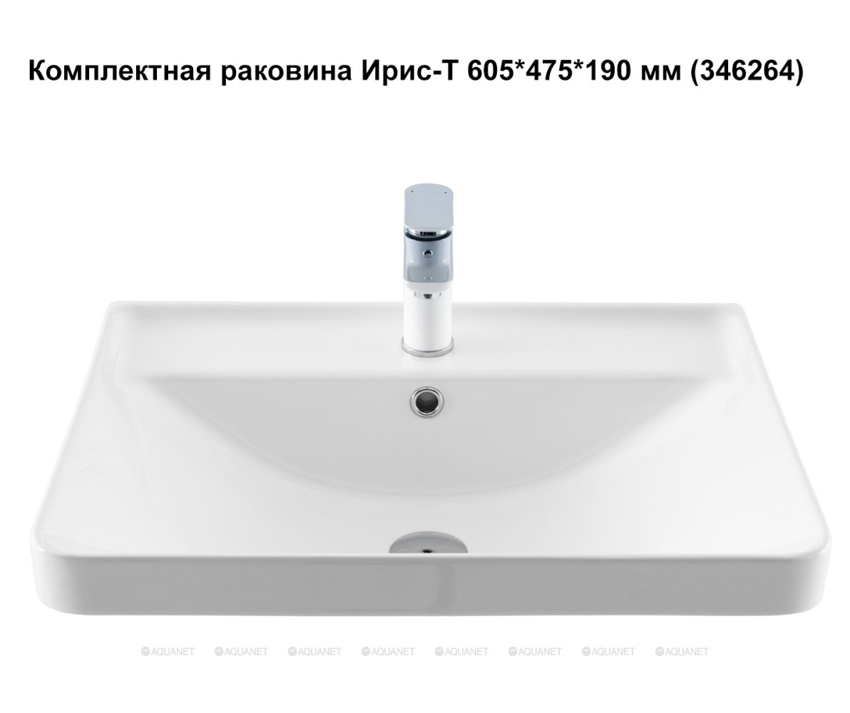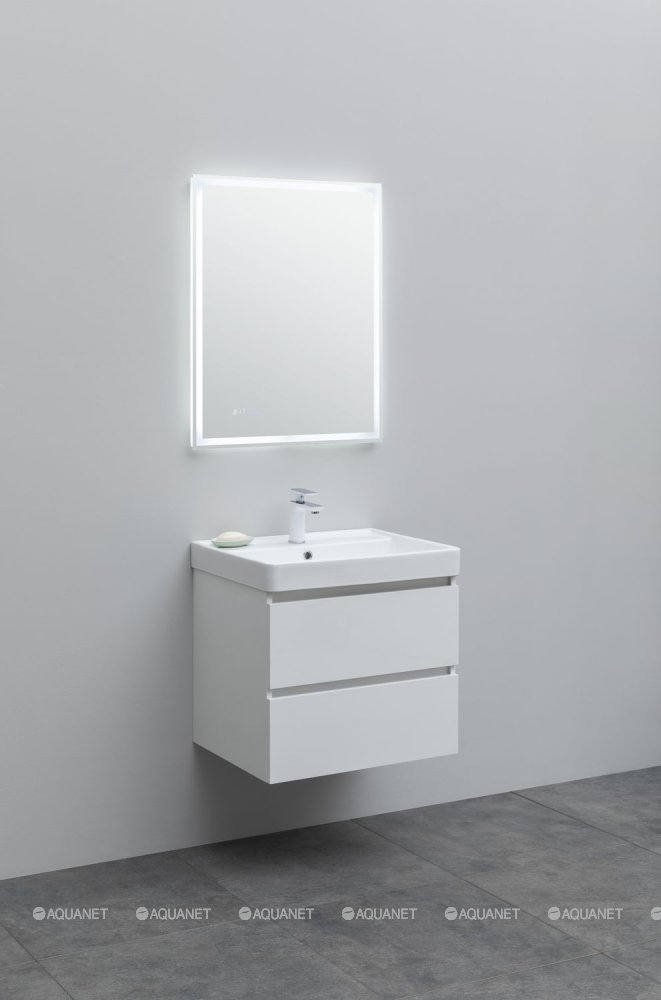 Aquanet 367328 Тумба с раковиной Вега 60 (Ирис T) 2 ящ. цв. белый глянец (367328)