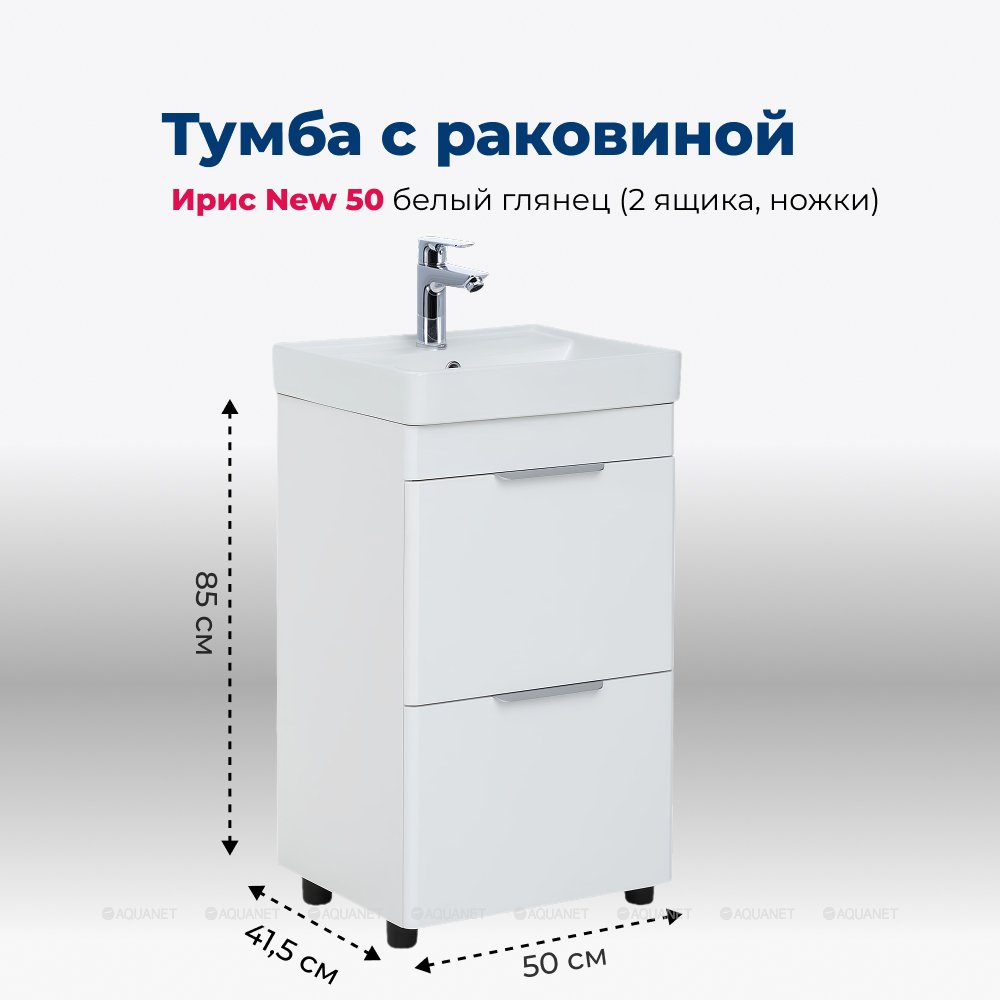 Aquanet 367334 Тумба с раковиной Ирис new 50 (Ирис Т) напольная 2 ящ. цв.белый глянец (367334)