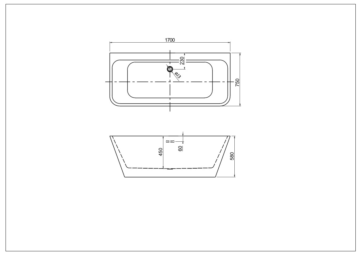 Aquatek AQ-113775Wt AQ-113775Wt ЭЛЕГИЯ Ванна акриловая, пристенная, 1700*750*580. В комплекте со сливом и ножками. Цвет белый глянцевый.