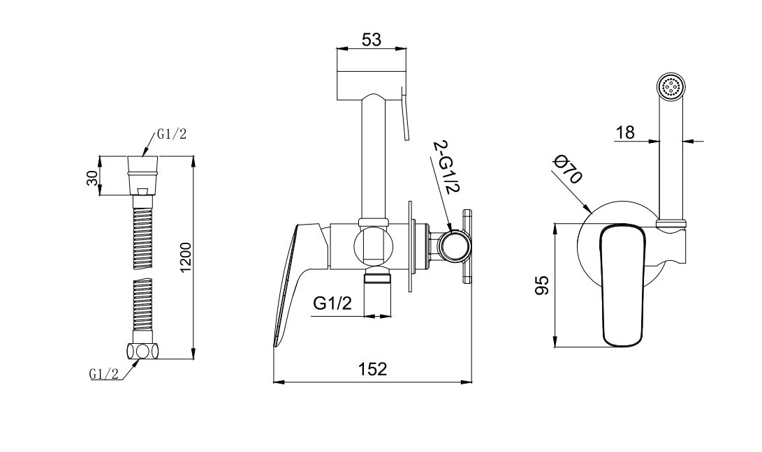 Aquatek AQ1019BGM AQ1019BGM ВЕГА комплект для гигиенического душа встроенный (смеситель + гигиеническая лейка + шланг), оружейная сталь