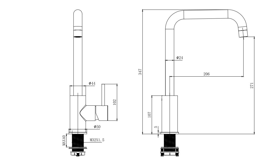Aquatek AQ1080BGM AQ1080BGM ВЕГА смеситель для кухни (квадратный излив), оружейная сталь