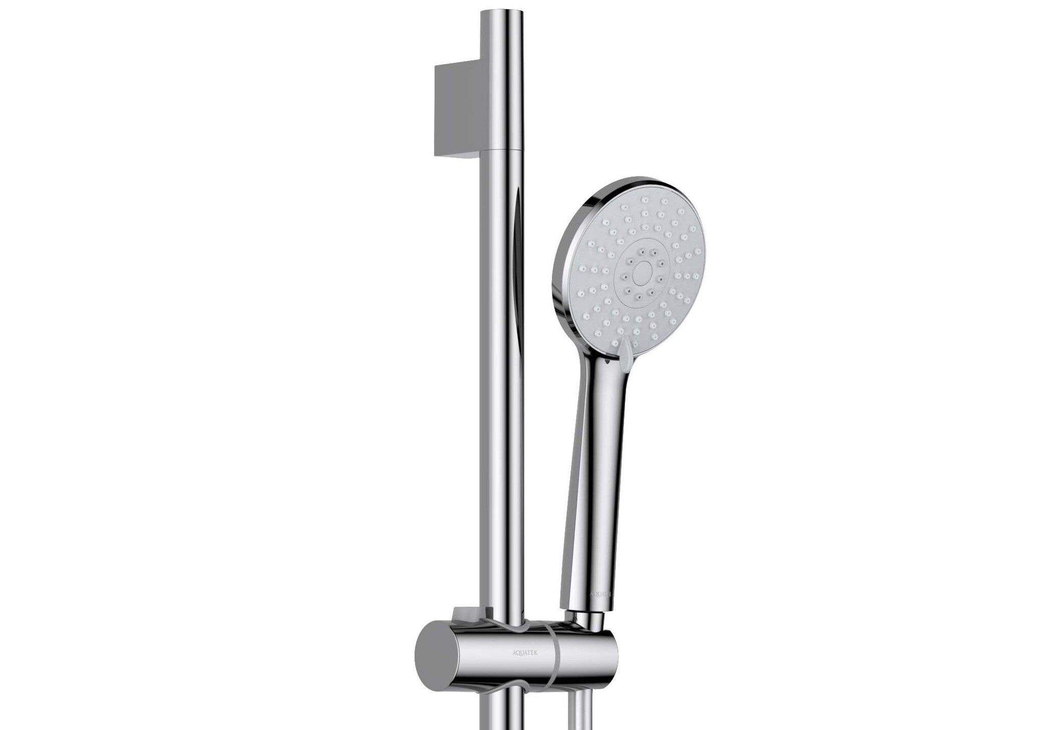 • Душевой гарнитур: стойка для душа, лейка, держатель лейки, шланг