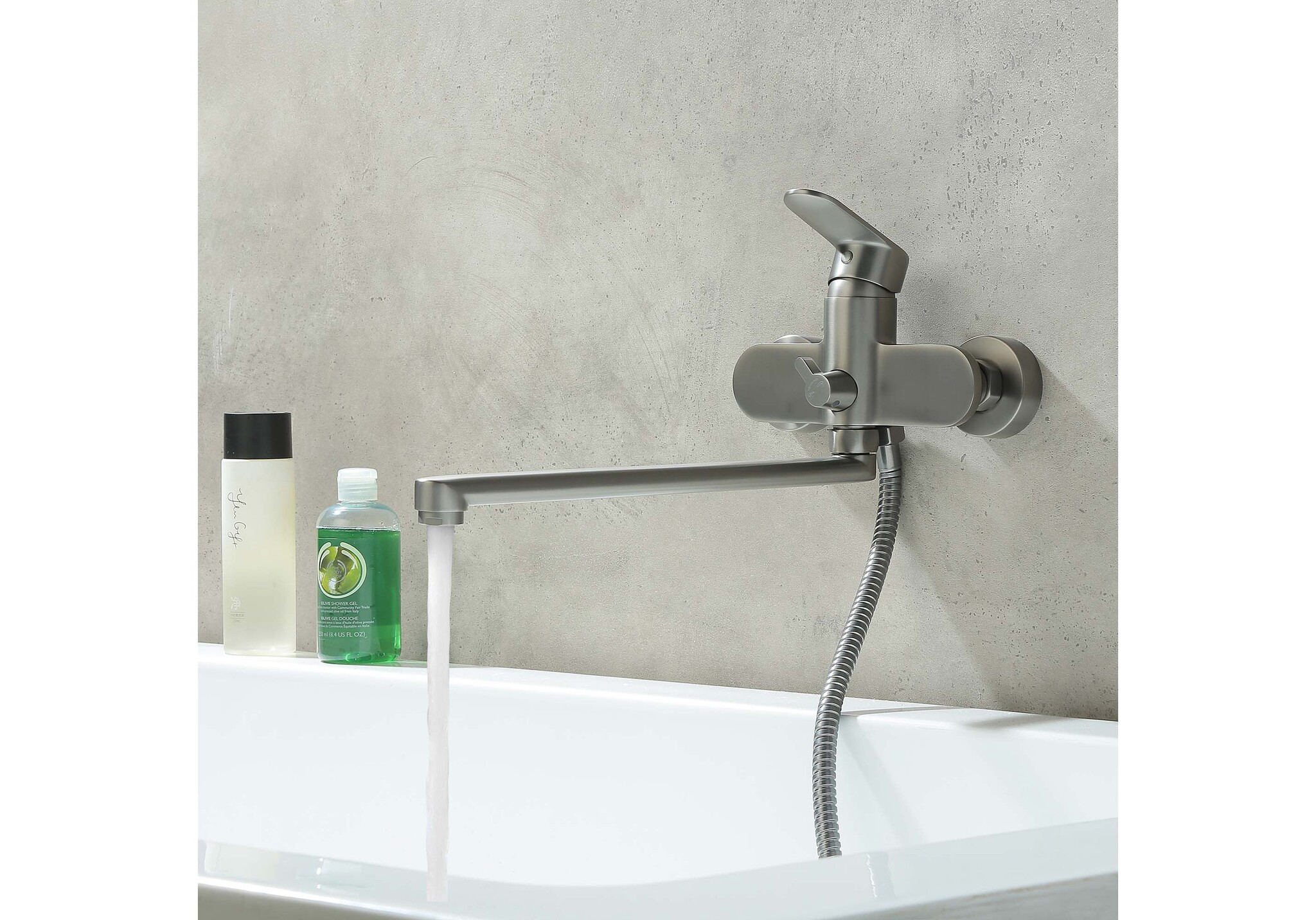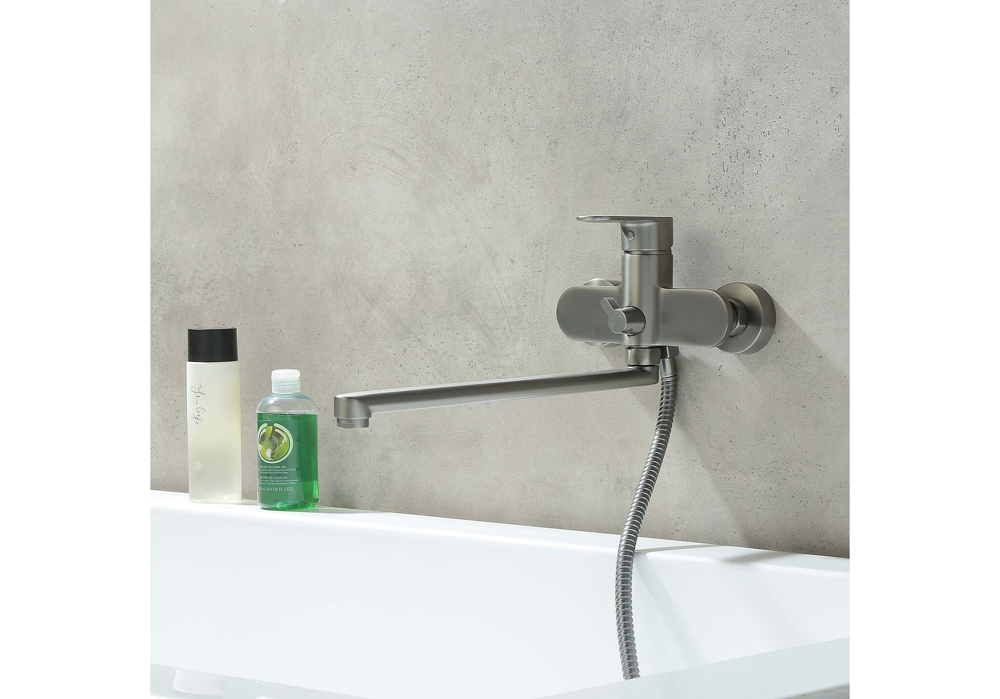 Aquatek Ника AQ1842BGM Смеситель для ванны с длинным изливом, цвет: оружейная сталь