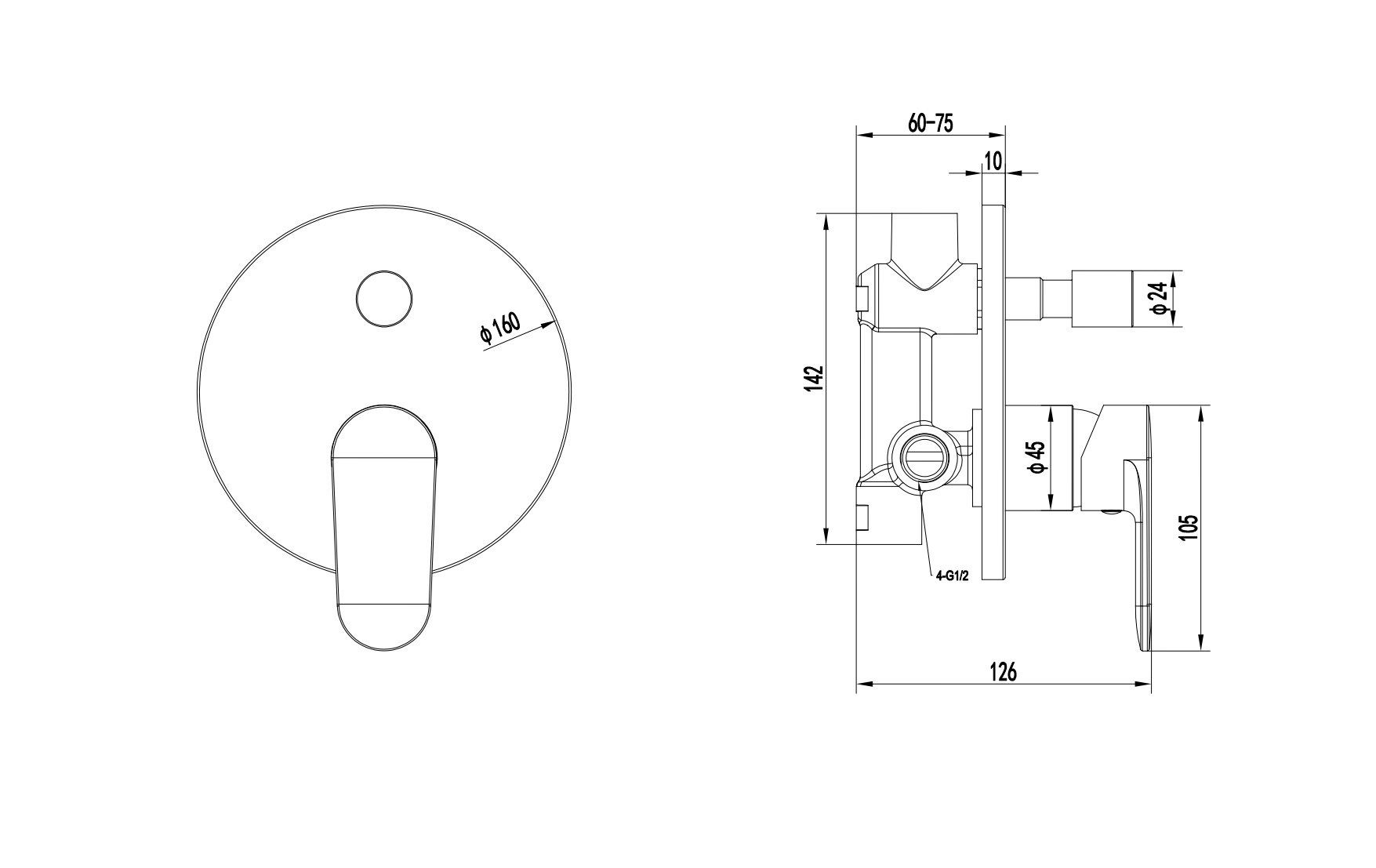 • Однорычажная система регулировки силы струи и температуры воды