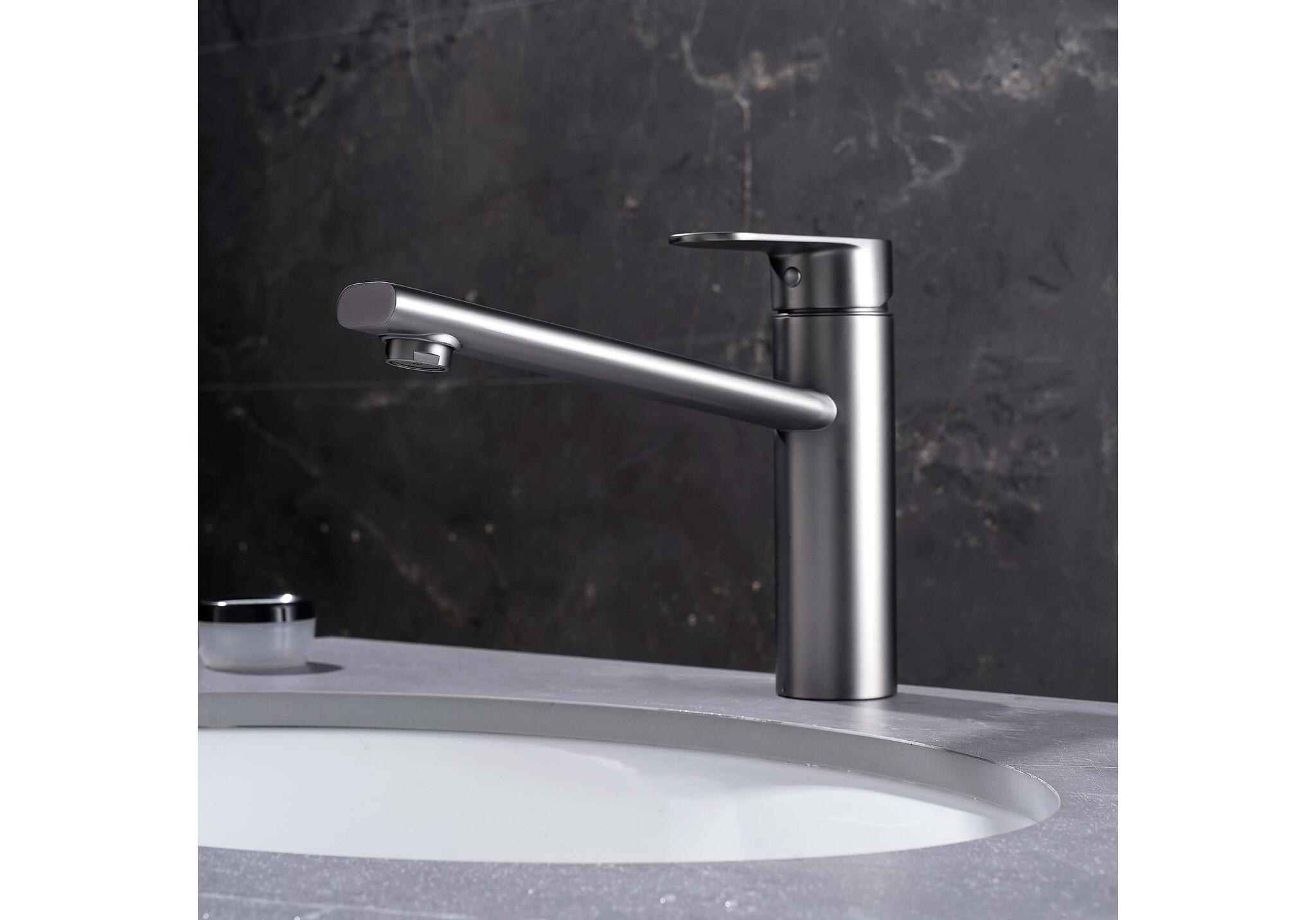 • оснащен длинным изливом, подходит для большинства кухонных моек