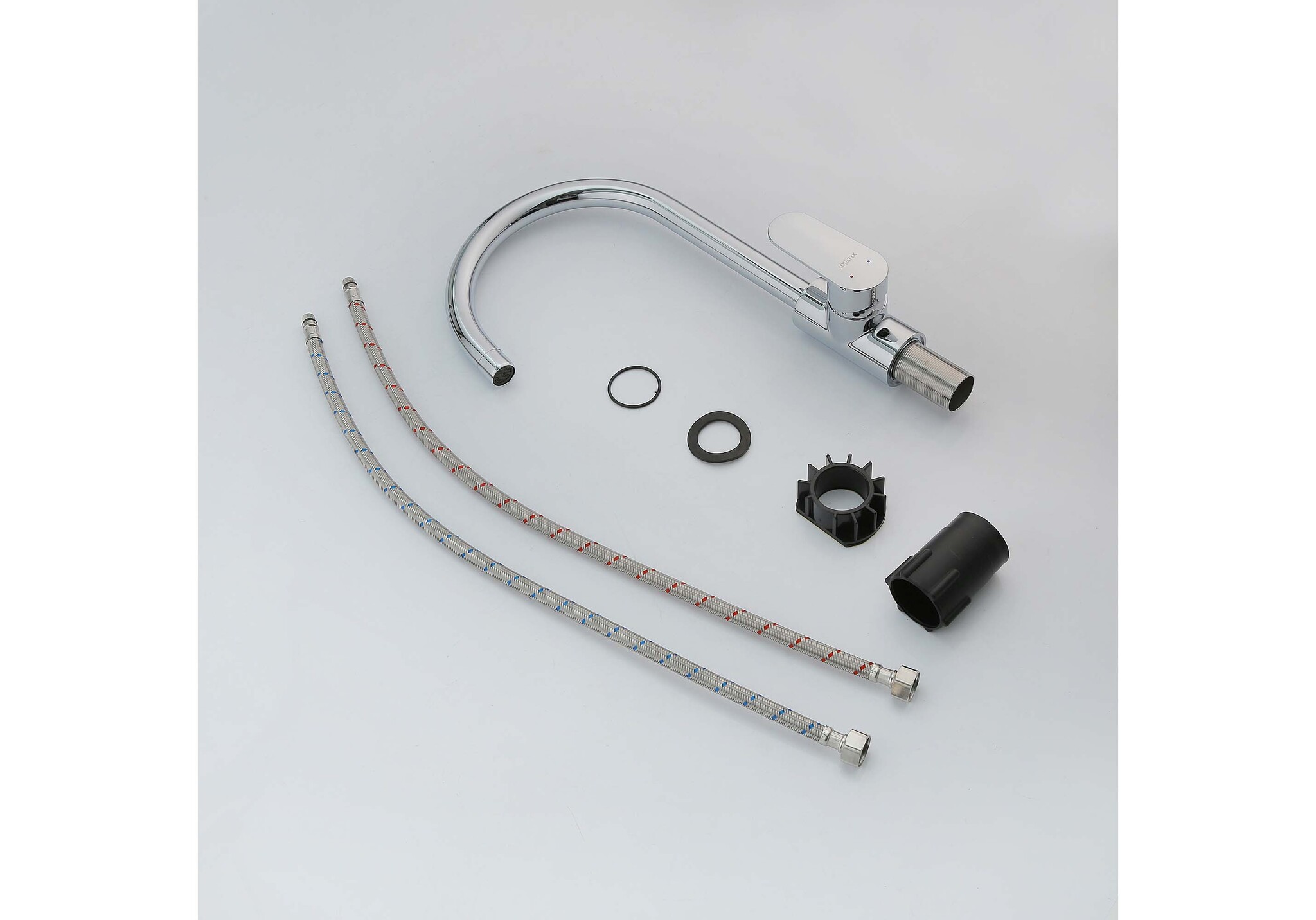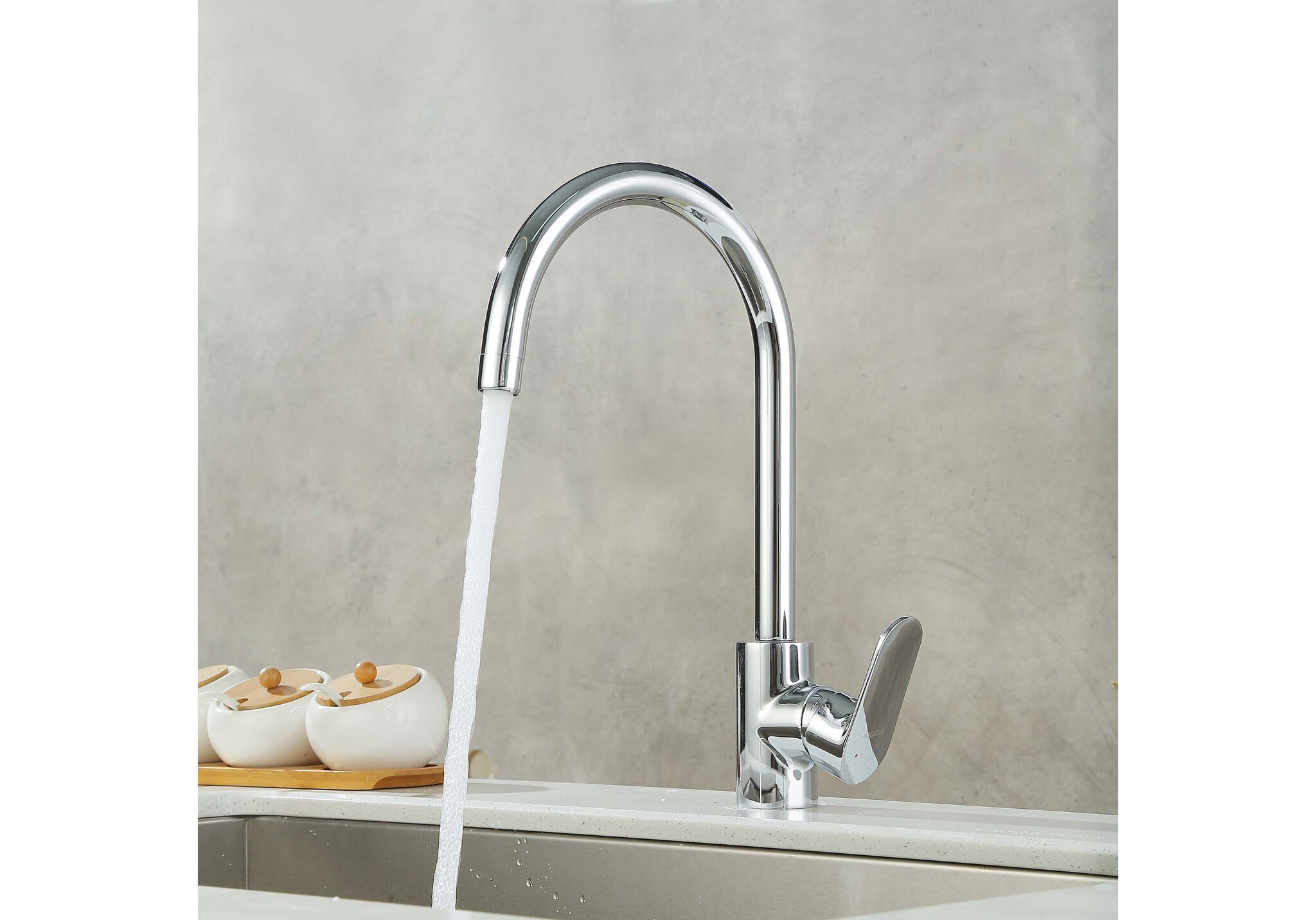 • оснащен высоким изливом, подходит для большинства кухонных моек