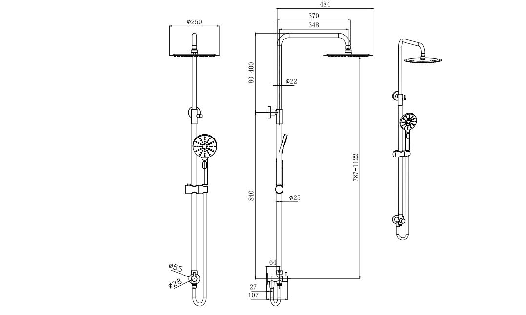 Aquatek AQ2046BGM AQ2046BGM ВЕГА душевая система 3jet 250мм Reno, оружейная сталь