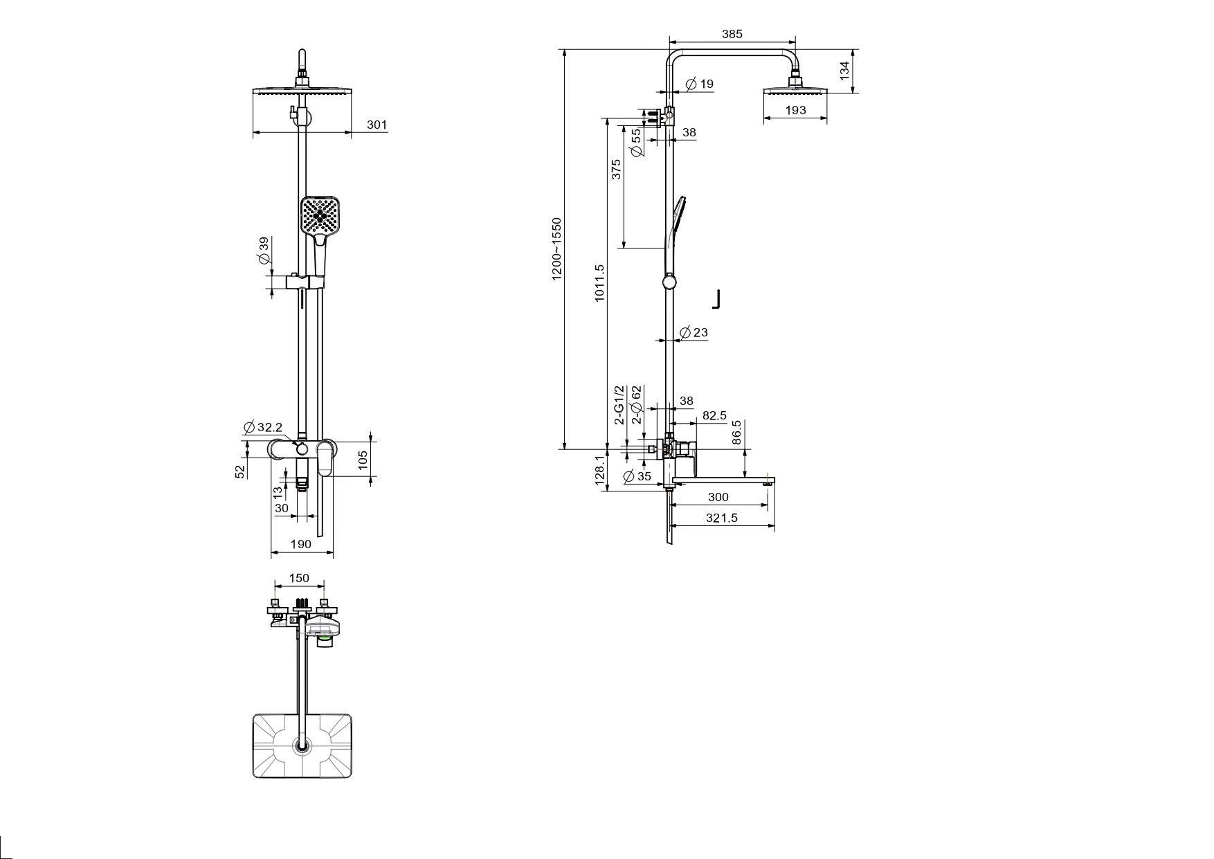 • регулируемая душевая штанга из нержавеющей стали, выдвигающаяся до 1550 мм в высоту