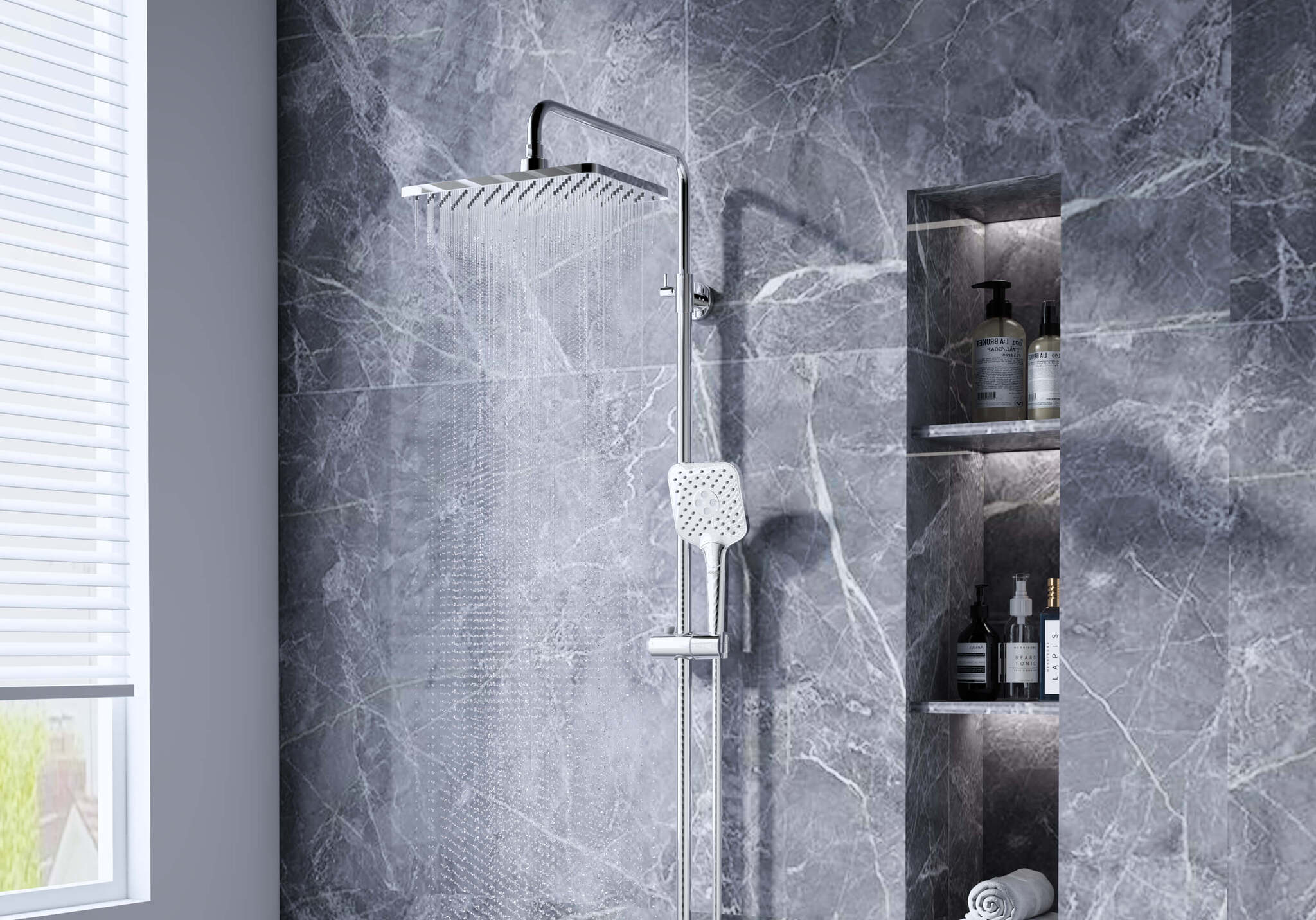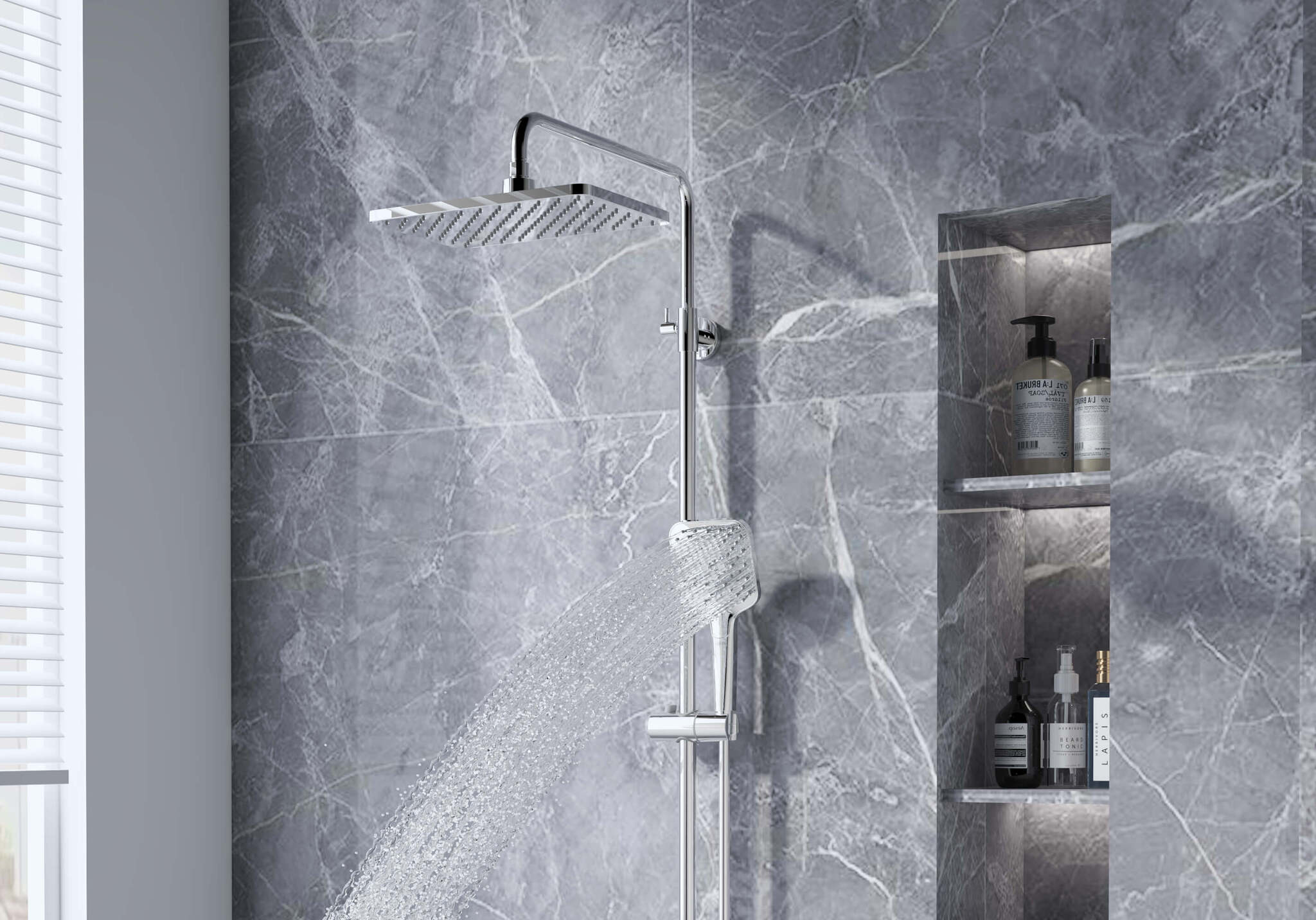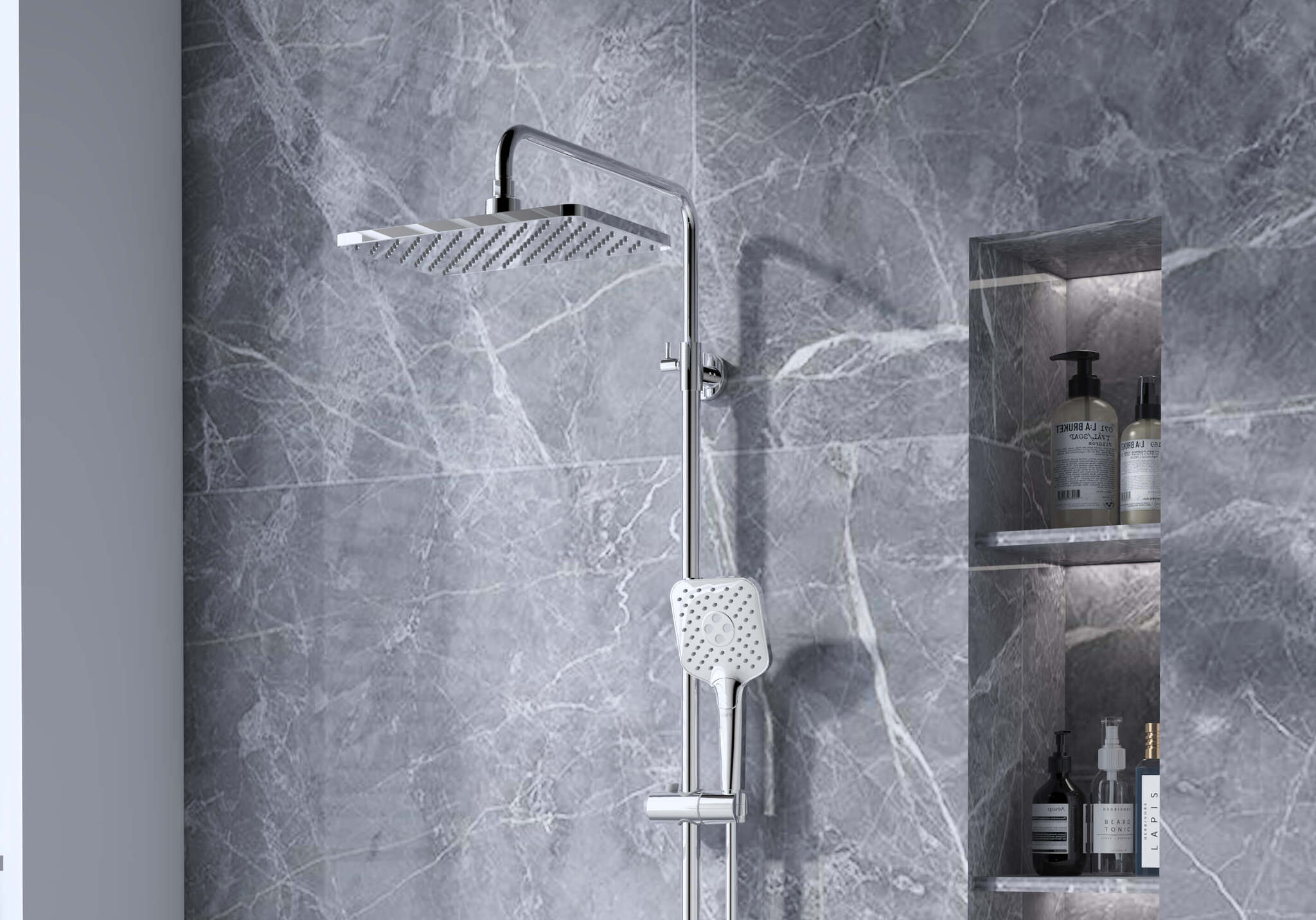 • регулируемая душевая штанга из нержавеющей стали, выдвигающаяся до 1550 мм в высоту