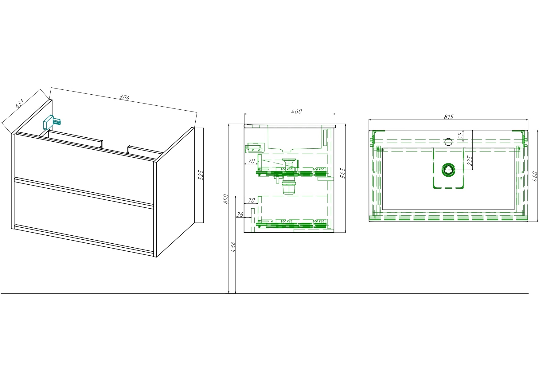 Aquatek AQ66080-DO-MG AQ66080-DO-MG Комплект мебели:Тумба 80 см ЛИБРА с раковиной AQ0480-00, 2 ящика,цвет фасадов серый мат,  корпус дуб давос