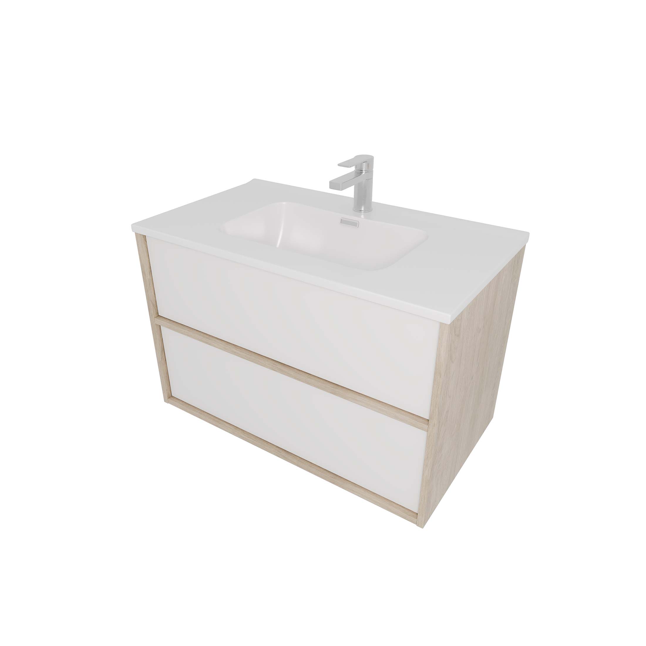 Aquatek AQ66080-DO-MW AQ66080-DO-MW Комплект мебели:Тумба 80 см ЛИБРА с раковиной AQ0480-00, 2 ящика,цвет фасадов белый мат,  корпус дуб давос