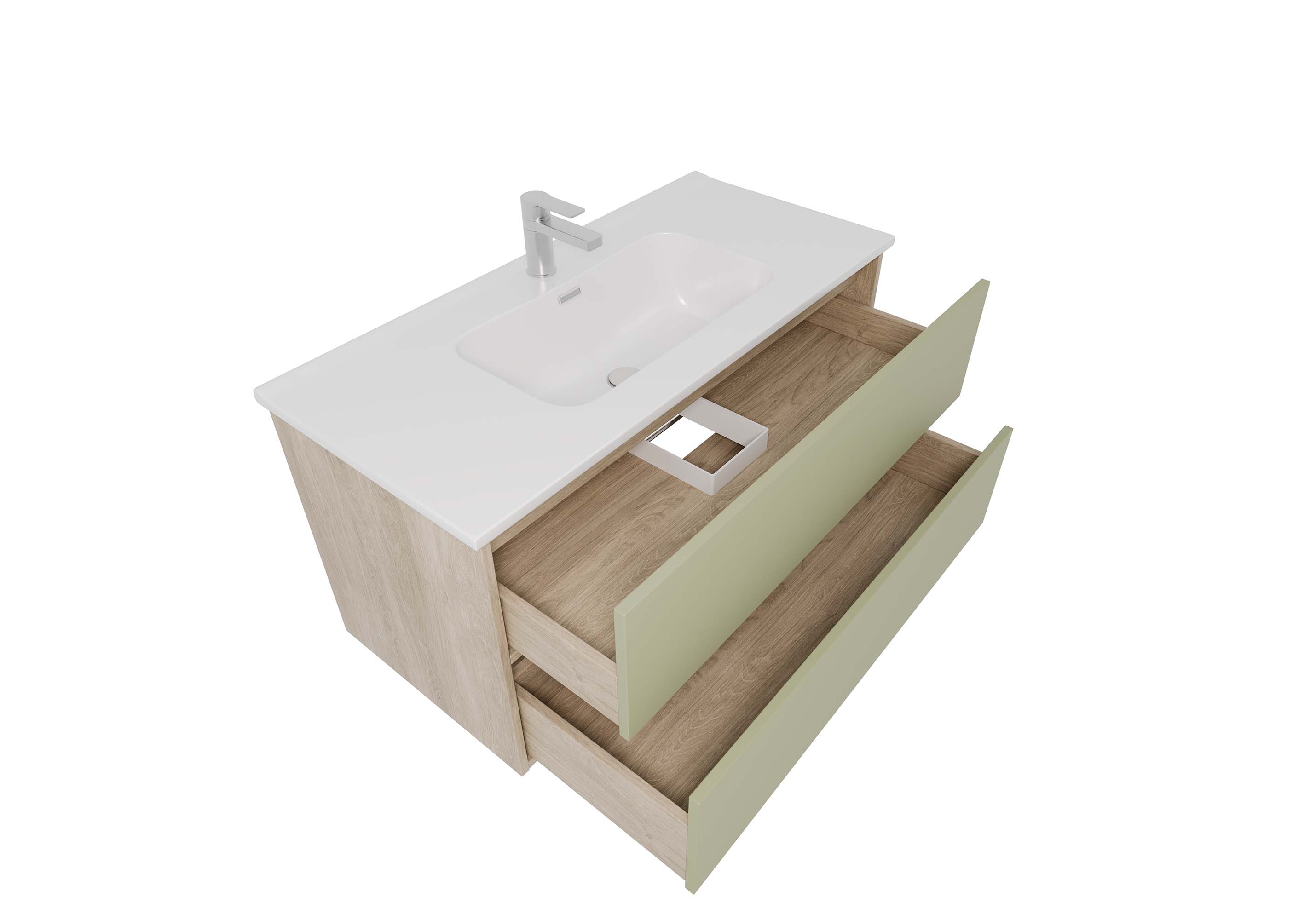 Aquatek AQ66100-DO-GS AQ66100-DO-GS Комплект мебели:Тумба 100 см ЛИБРА с раковиной AQ4100-00, 2 ящика,цвет фасадов шалфей зеленый, корпус дуб давос