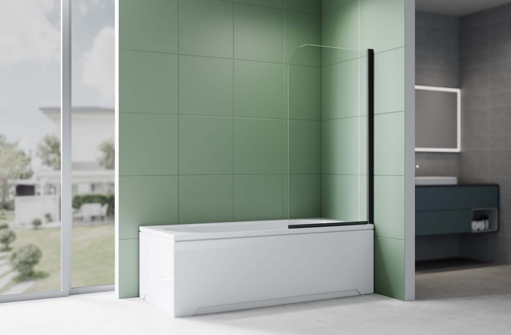 Aquatek AQ.BSRC.080.1BL AQ.BSRC.080.1BL Шторка на ванну, одноэлементная, поворотная 800X1500 профиль черный, стекло прозрачное 6мм, угол круглый