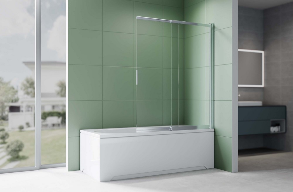 Aquatek AQ.BSS.100.1CH AQ.BSS.100.1CH Шторка на ванну двухэлементная, поворотная 1000X1500 профиль хром, стекло прозрачное 5мм