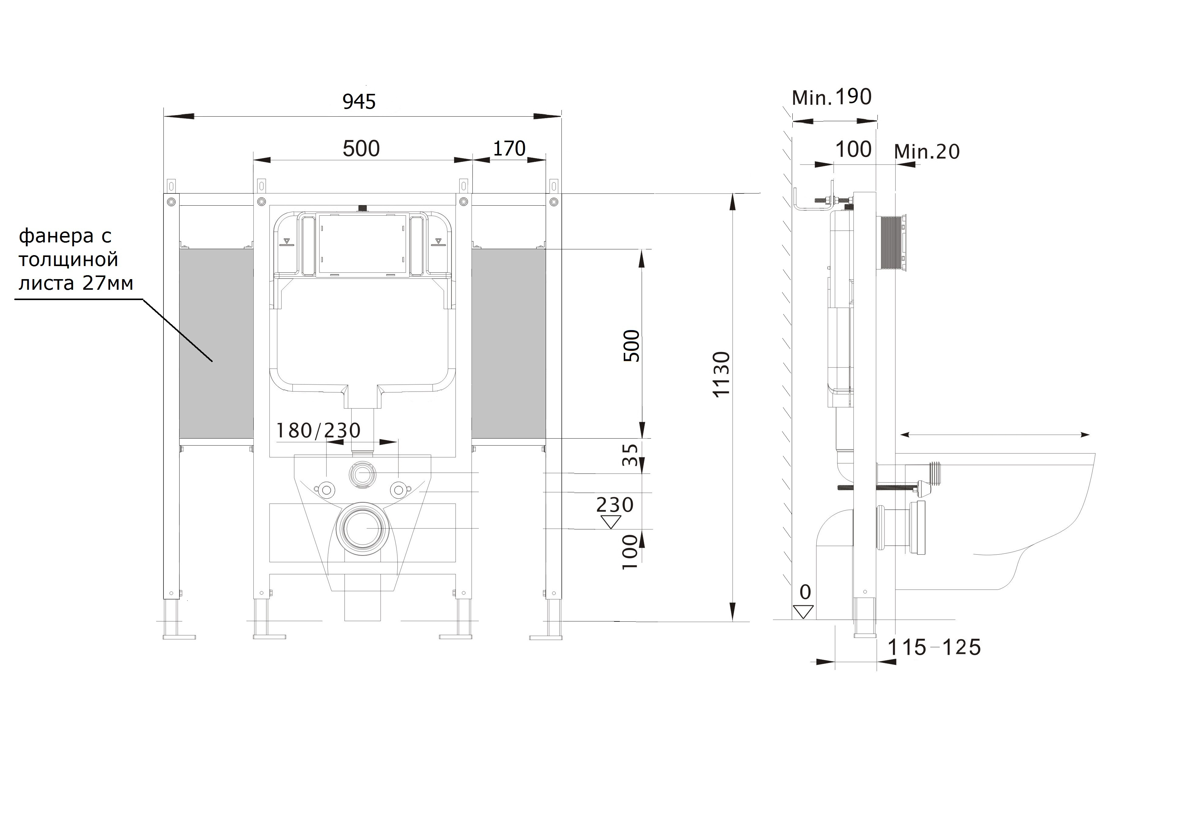 Aquatek INSE-0000002.36 INSE-0000002.36 Aquatek Sensor SET Монтажная рама для подв унитаза 1130*950*100 для лиц с ограниченными возможностями + панель смыва KDIS-0000036