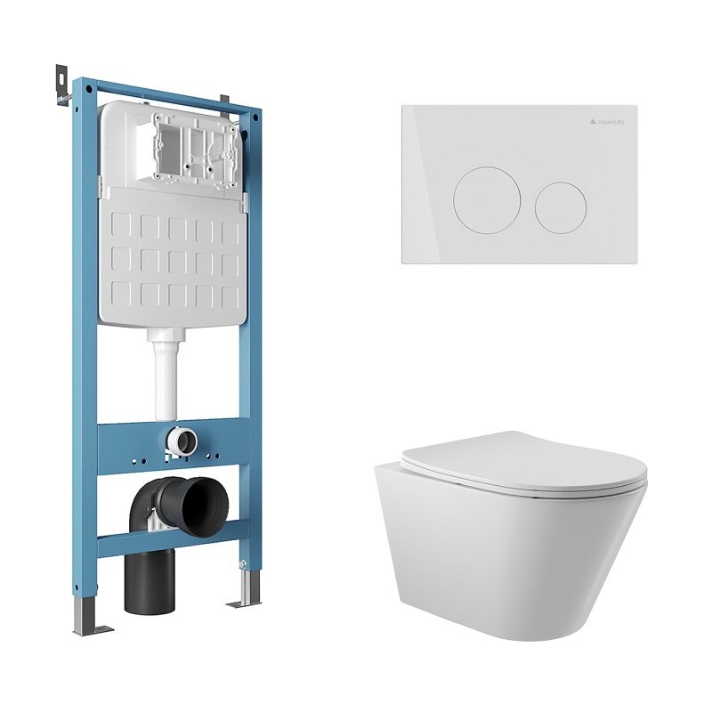 Aqueduto AQDS086 AQD комплект: TECNICA Novo Система инсталляции для подвесного унитаза, CIRCULO Панель смыва, белый глянцевый, CONE Унитаз подвесной 525*360 безободковый, сиденье с микролифтом, белый глянцевый