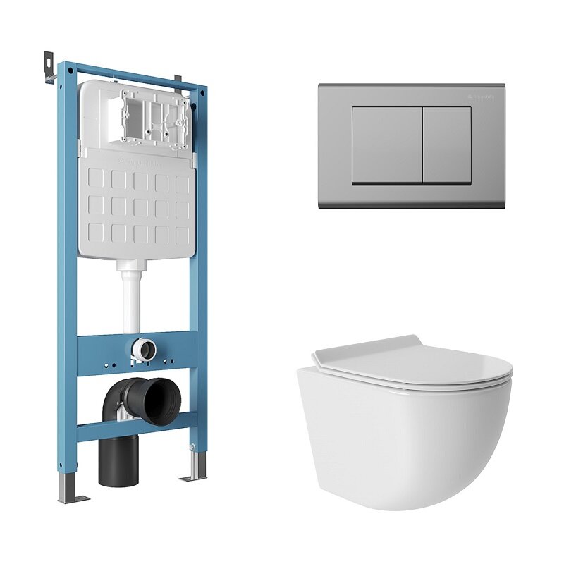 Aqueduto AQDS100T AQD комплект: TECNICA Novo Система инсталляции для подвесного унитаза, QUADRADO Панель смыва, хром, OVO Tornado S унитаз подвесной 480*360 безободковый, Tornado, сиденье с микролифтом, белый глянцевый