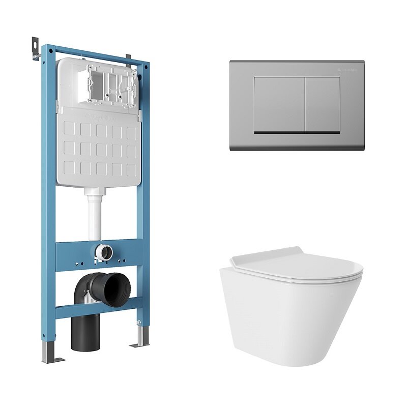 Aqueduto AQDS115T AQD комплект: TECNICA Novo Система инсталляции для подвесного унитаза, QUADRADO Панель смыва, хром, CONE Tornado S Унитаз подвесной 480*360 безободковый, Tornado, сиденье с микролифтом, белый глянцевый