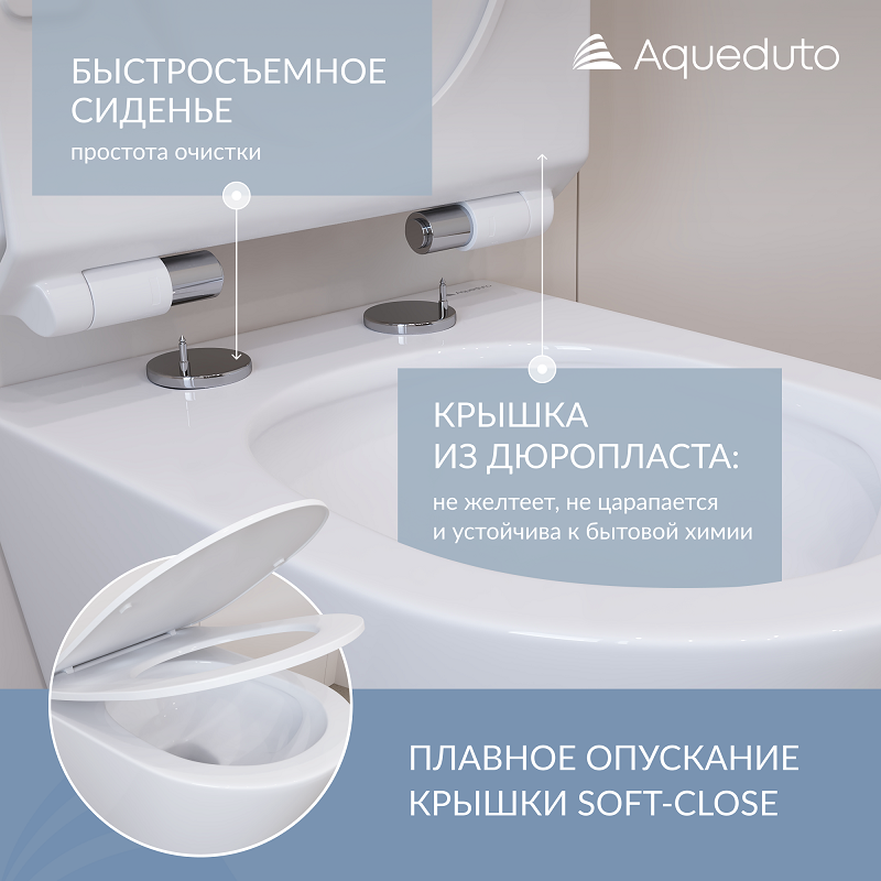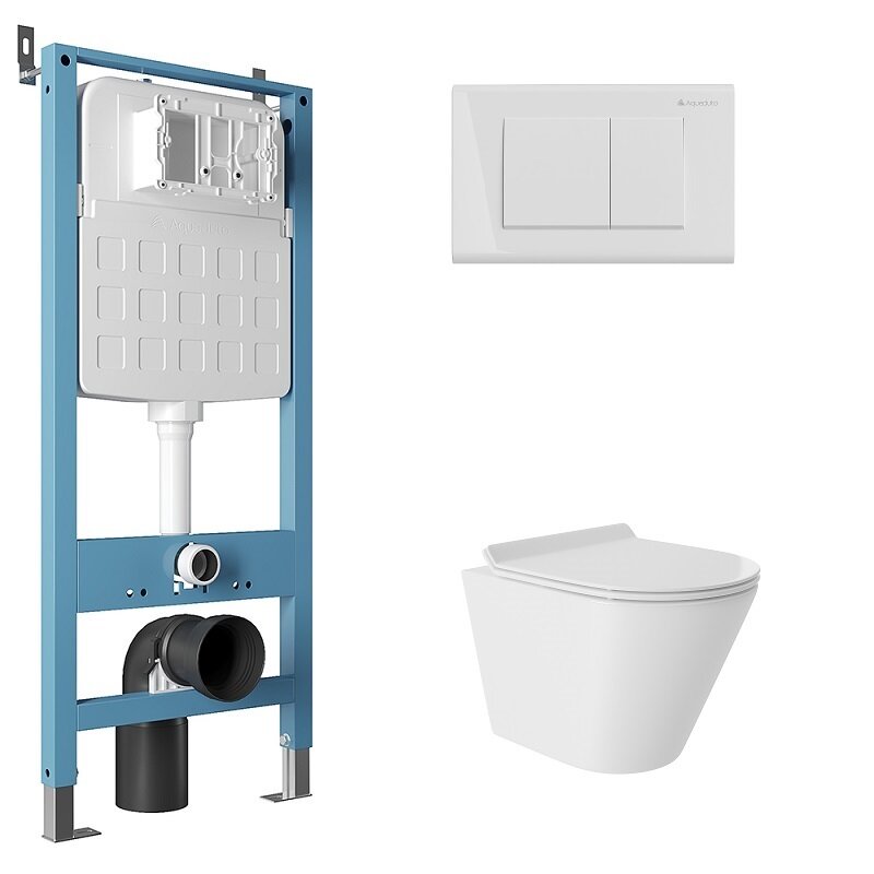 Aqueduto AQDS116T AQD комплект: TECNICA Novo Система инсталляции для подвесного унитаза, QUADRADO Панель смыва, белый глянцевый, CONE Tornado S Унитаз подвесной 480*360 безободковый, Tornado, сиденье с микролифтом, белый глянцевый