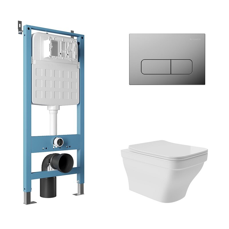 Aqueduto AQDS160 AQD комплект: TECNICA Novo Система инсталляции для подвесного унитаза, FORMA Панель смыва, хром, ESTETA Унитаз подвесной 520*370 безободковый, сиденье с микролифтом, белый глянцевый